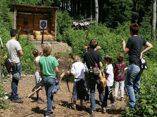 Der Bogenschieß-Parcours liegt auf etwa 850 m Seehöhe in Kirchberg in Tirol, direkt beim Berggasthof Staudachstubn.