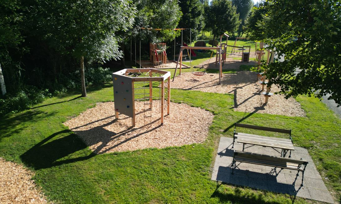Der Spielplatz liegt direkt am Radweg, neben dem Restaurant Fischerstadl, und ist somit bequem erreichbar – sowohl zu Fuß als auch mit dem Fahrrad. Eltern können die Kinder beim Spielen entspannt beobachten und gleichzeitig die idyllische Umgebung genießen.