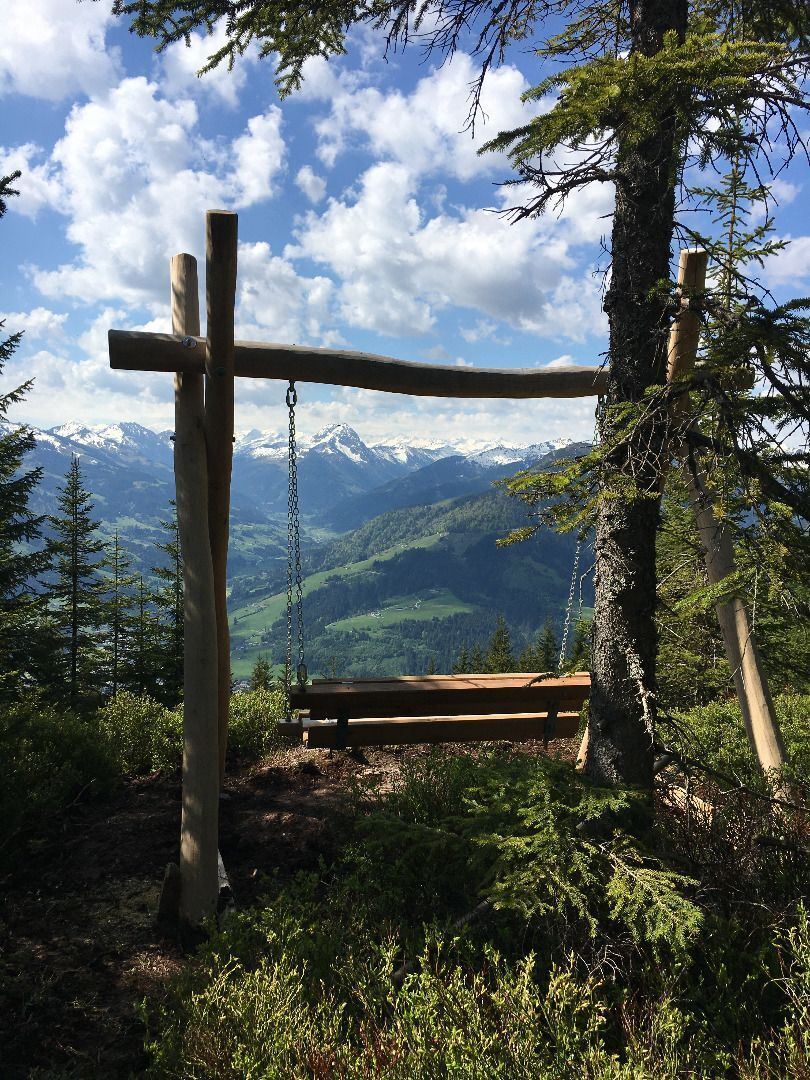 Man sollte etwas aufmerksam sein um die Brixental Schaukel kurz vor dem Gipfelkreuz mit Blick über Kirchberg in das wunderschöne Spertental zu entdecken.