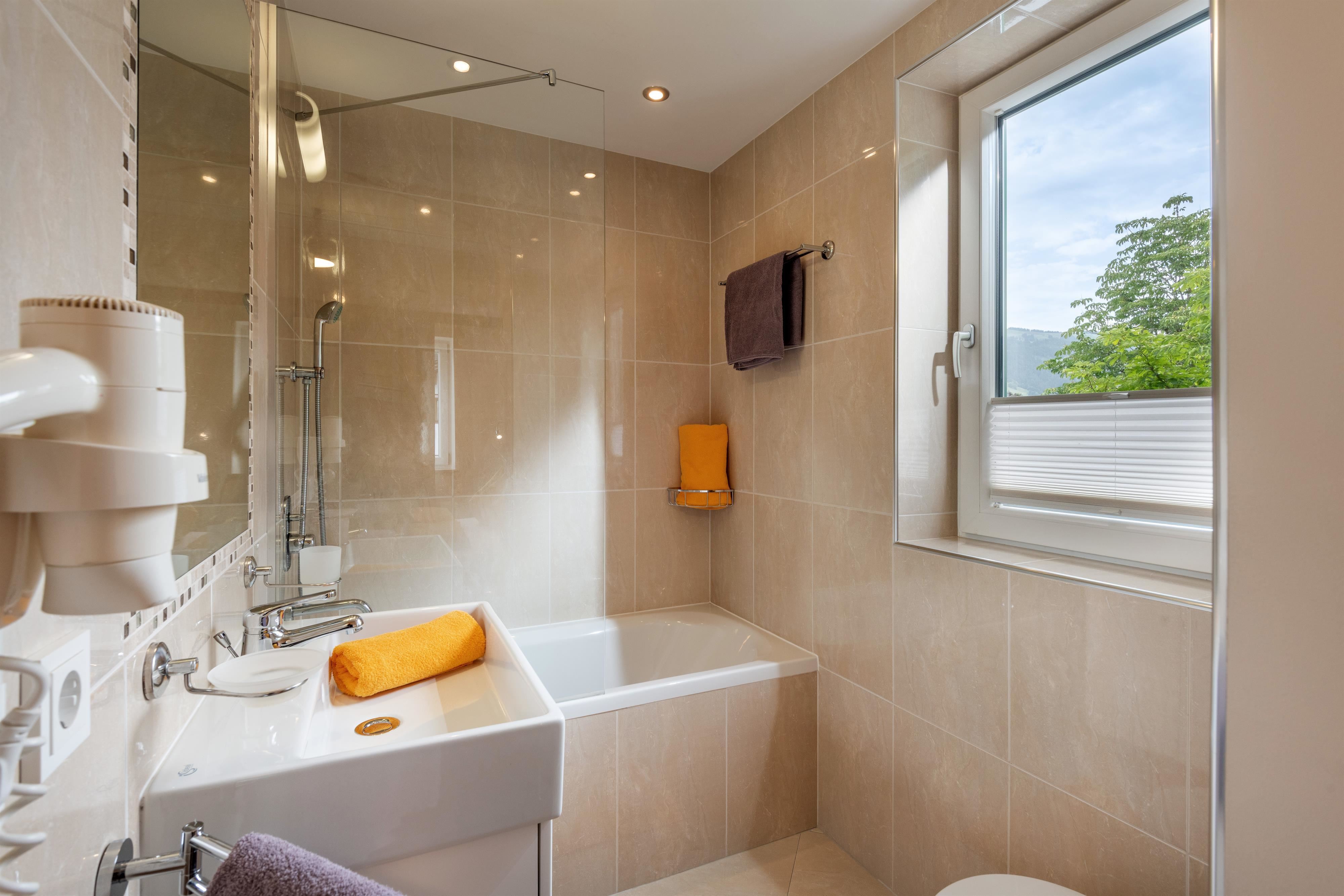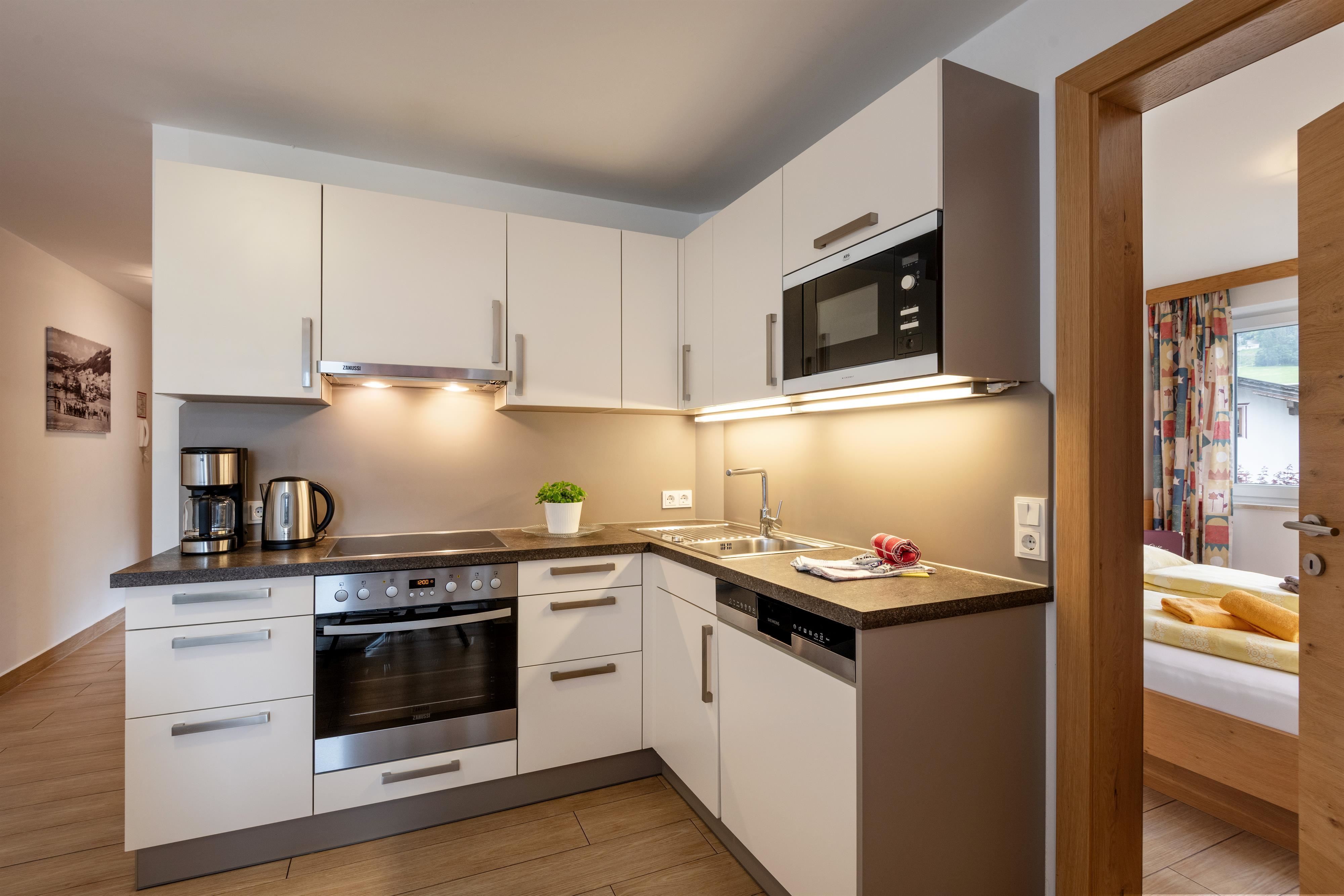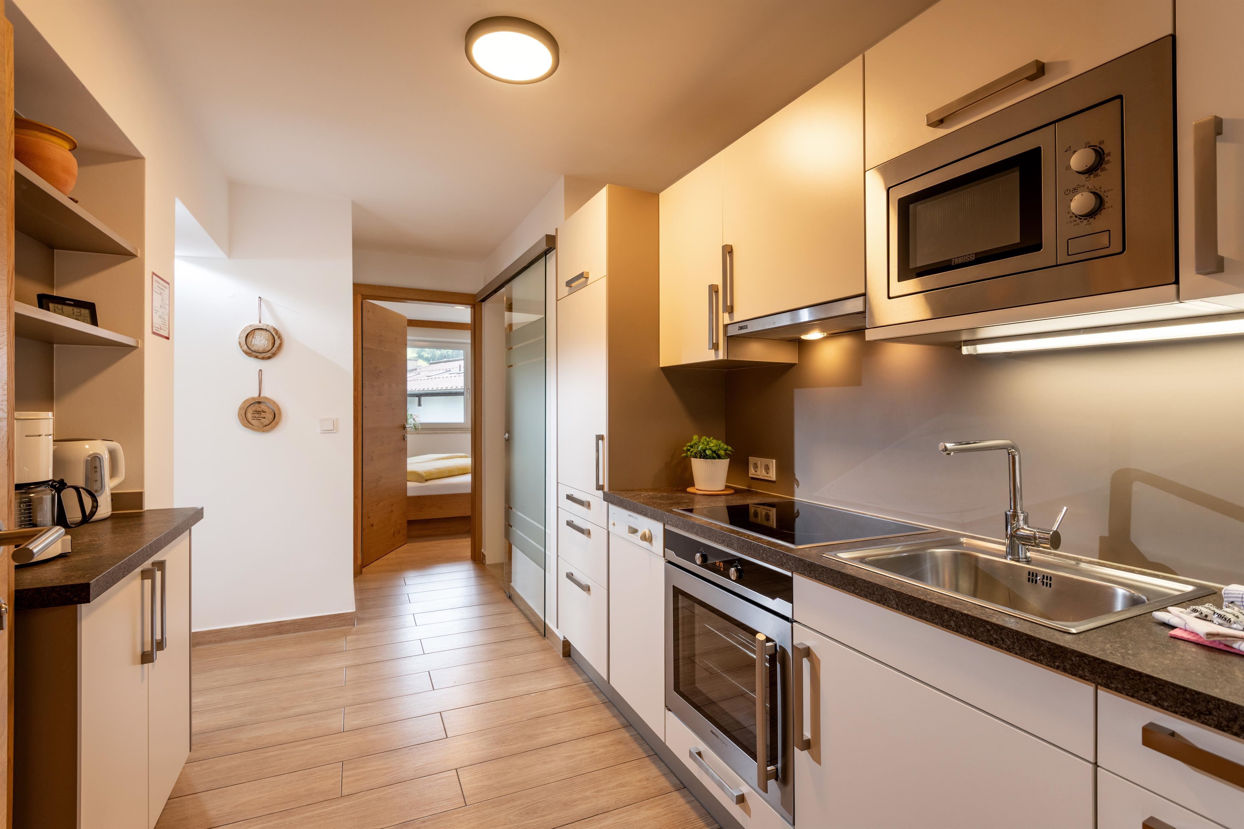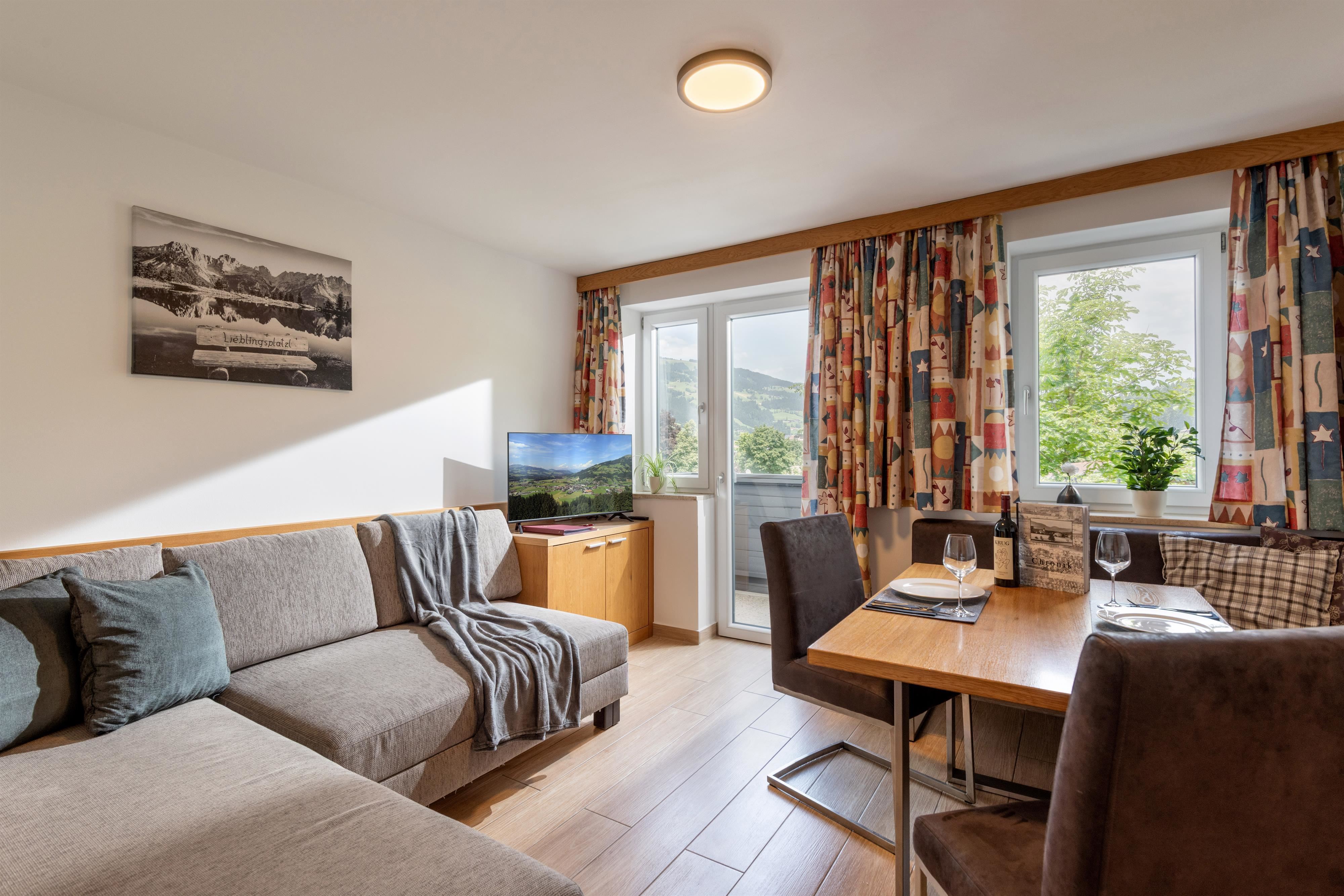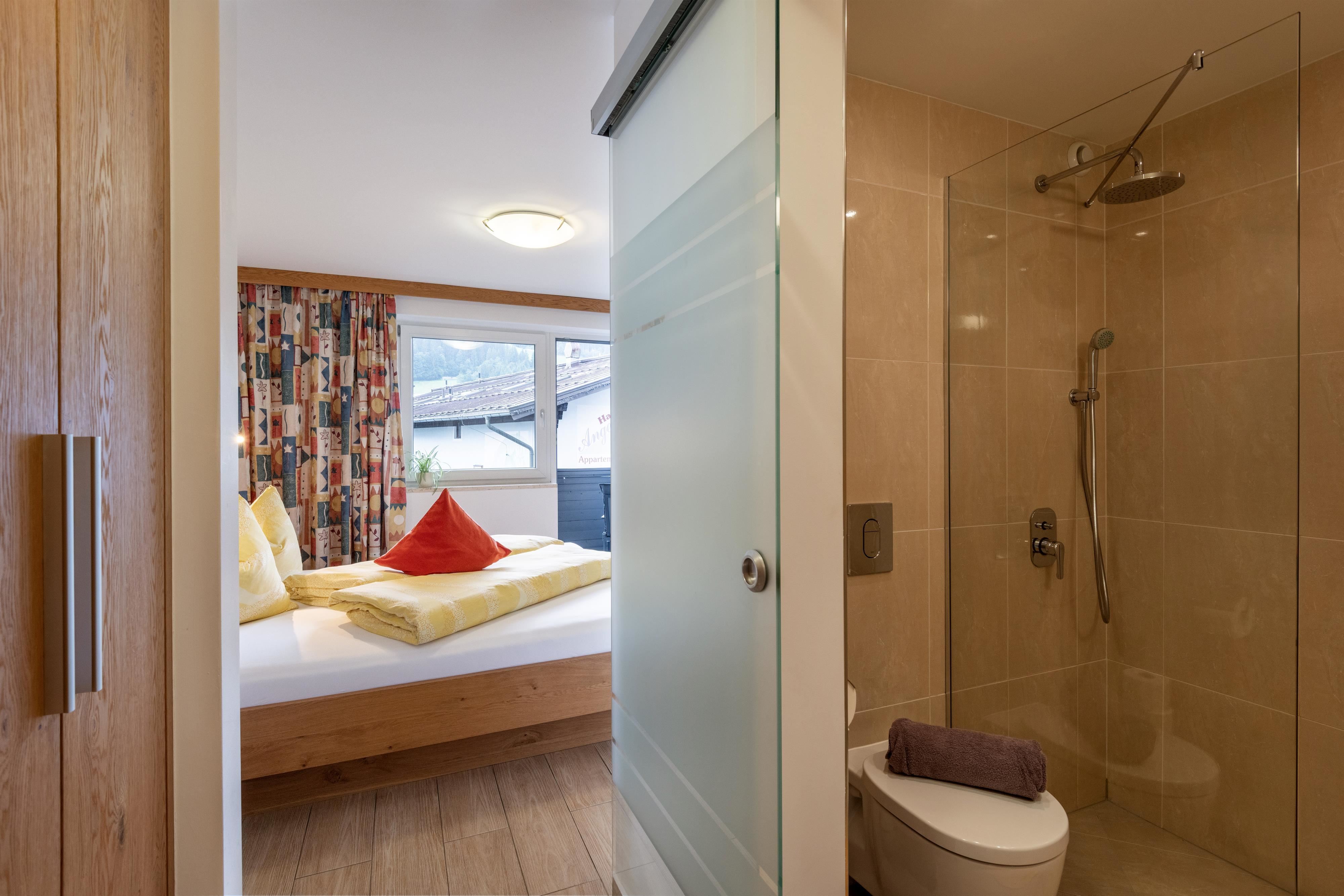 Appartement im Tiroler Stil, ca. 70m² groß , 1 Schlafzimmer, Wohnzimmer mit Doppelcouch, Wohnküche, Essecke, großes Badezimmer mit DU und Badewanne, WC getrennt, voll ausgestattete Küche. (2. Schlafzimmer mit Badewanne/WC, separatem Eingang)