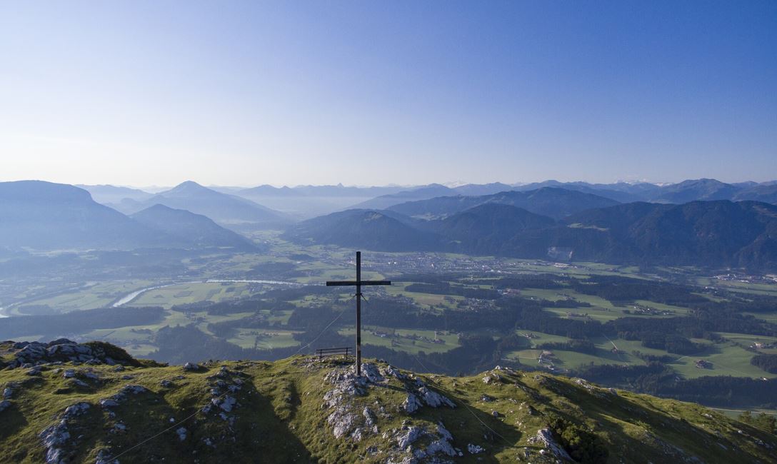 Gipfelkreuz ein atemberaubendes Panorama, das zu einer ausgiebigen Rast