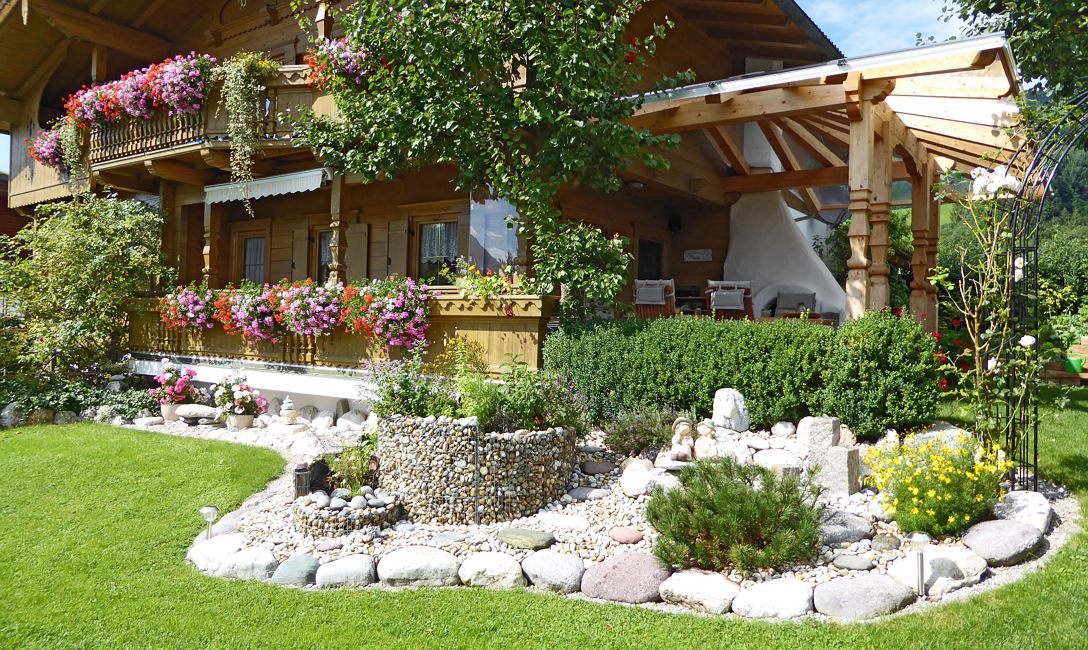 In den behaglichen Räumen aus Naturholz, Sonnenterrasse und Gartenanlage erleben Sie angenehme und unvergessene Ferien.