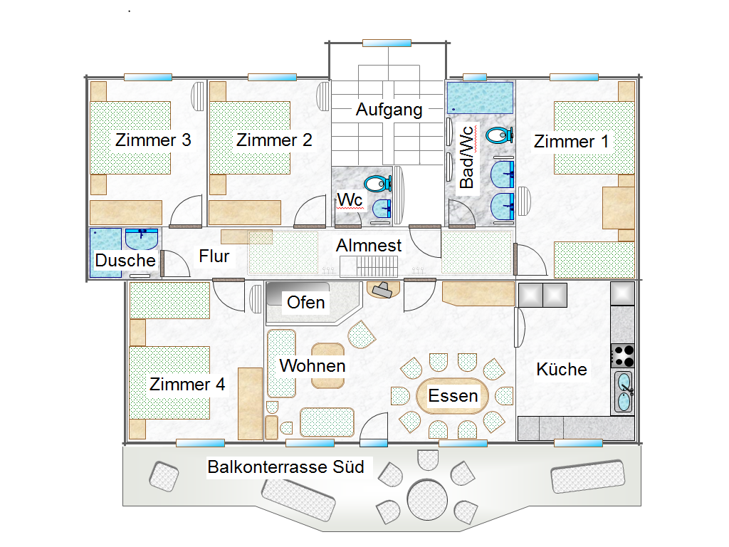 große Ferienwohnung 110 m², 4 Schlafzimmer und romantisches Almnest, speziell für Familien und gesellige Gruppen.