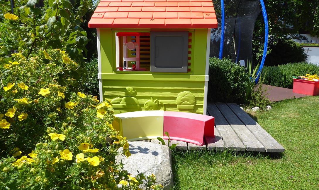 Gartenanlage, Trampolin, Spielgeräte, Parkplätze, Frühstücksbrotservice