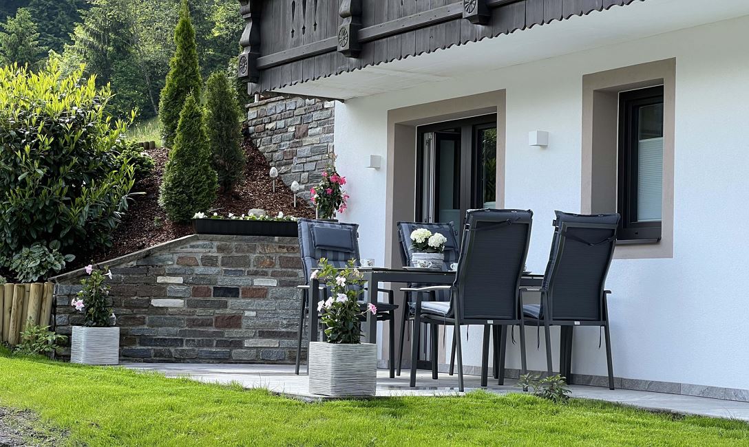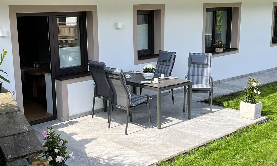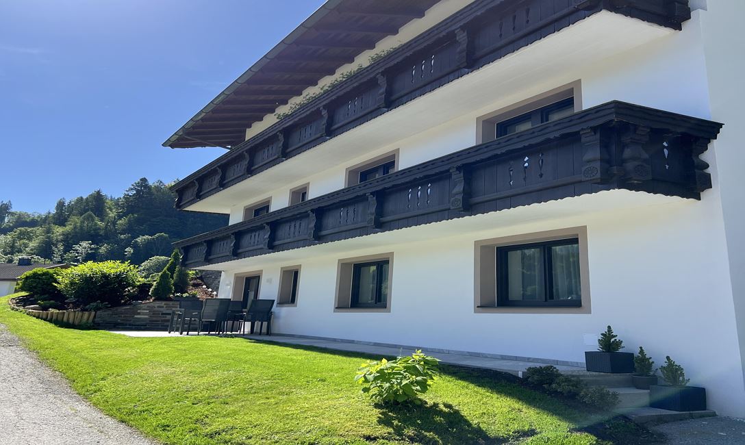 Die neu errichtete Ferienwohnung „Maria Theresia“ in Hopfgarten, ist eine von insgesamt drei Wohnungen unseres Hauses. Das Appartement befindet sich im Erdgeschoss mit einer großzügig angelegten Terrasse. Eine Garage für Auto und Fahrräder, sowie ein weiterer Abstellplatz stehen zur Verfügung. Wir befinden uns an einer Waldgrenze mit freiem Blick auf die Hohe Salve. Die Bergbahnen, der Badesee mit Spielplatz und das Ortsgebiet von Hopfgarten liegen ca. 1 km Fußmarsch entfernt.