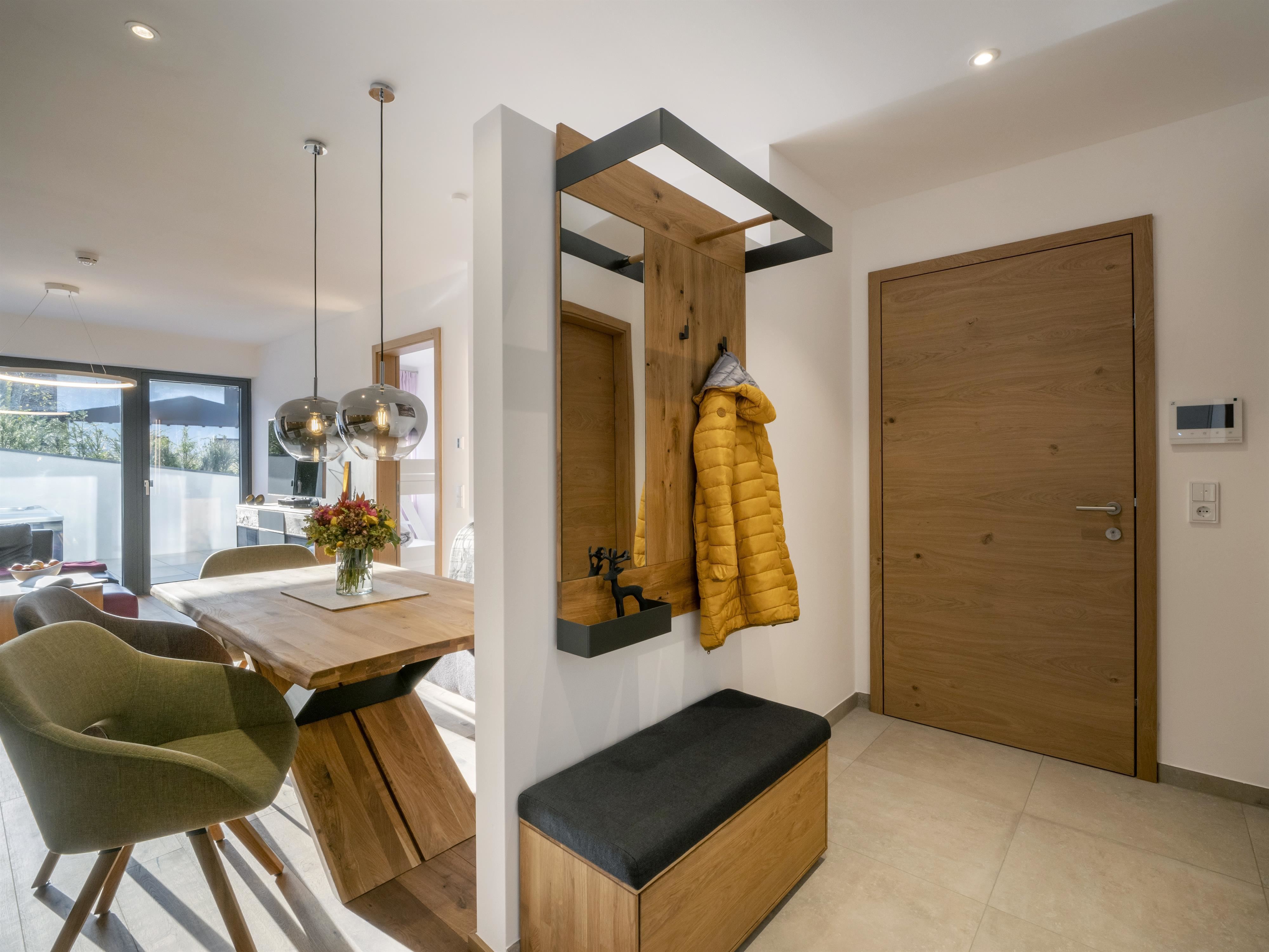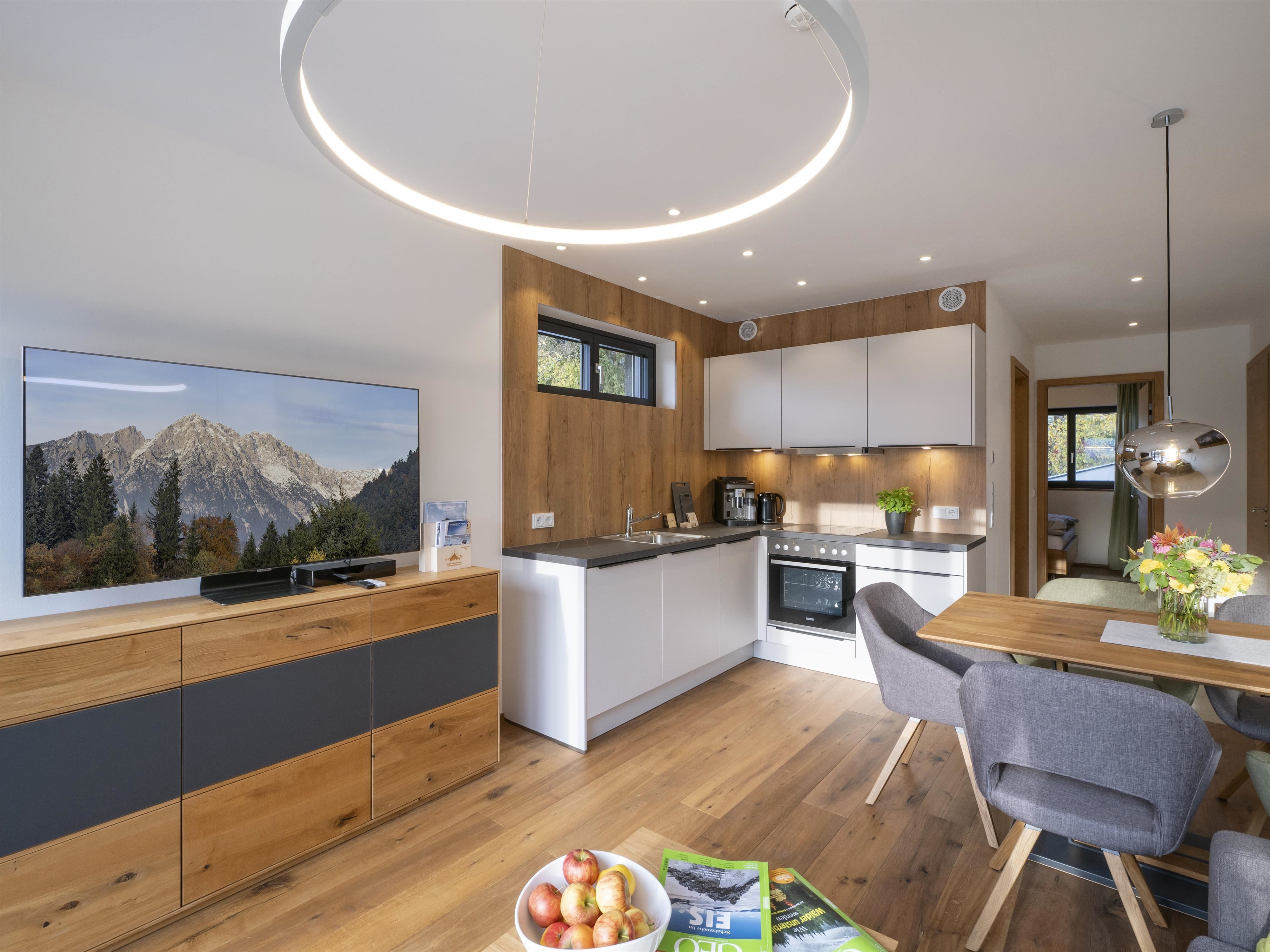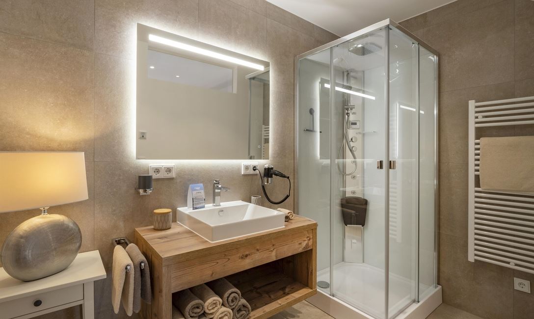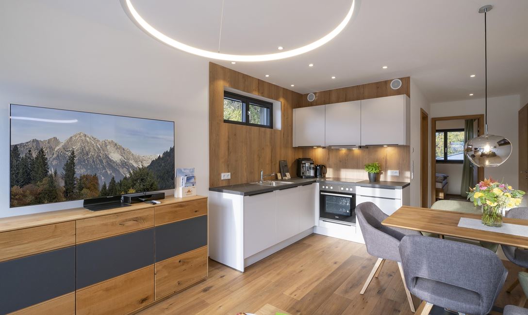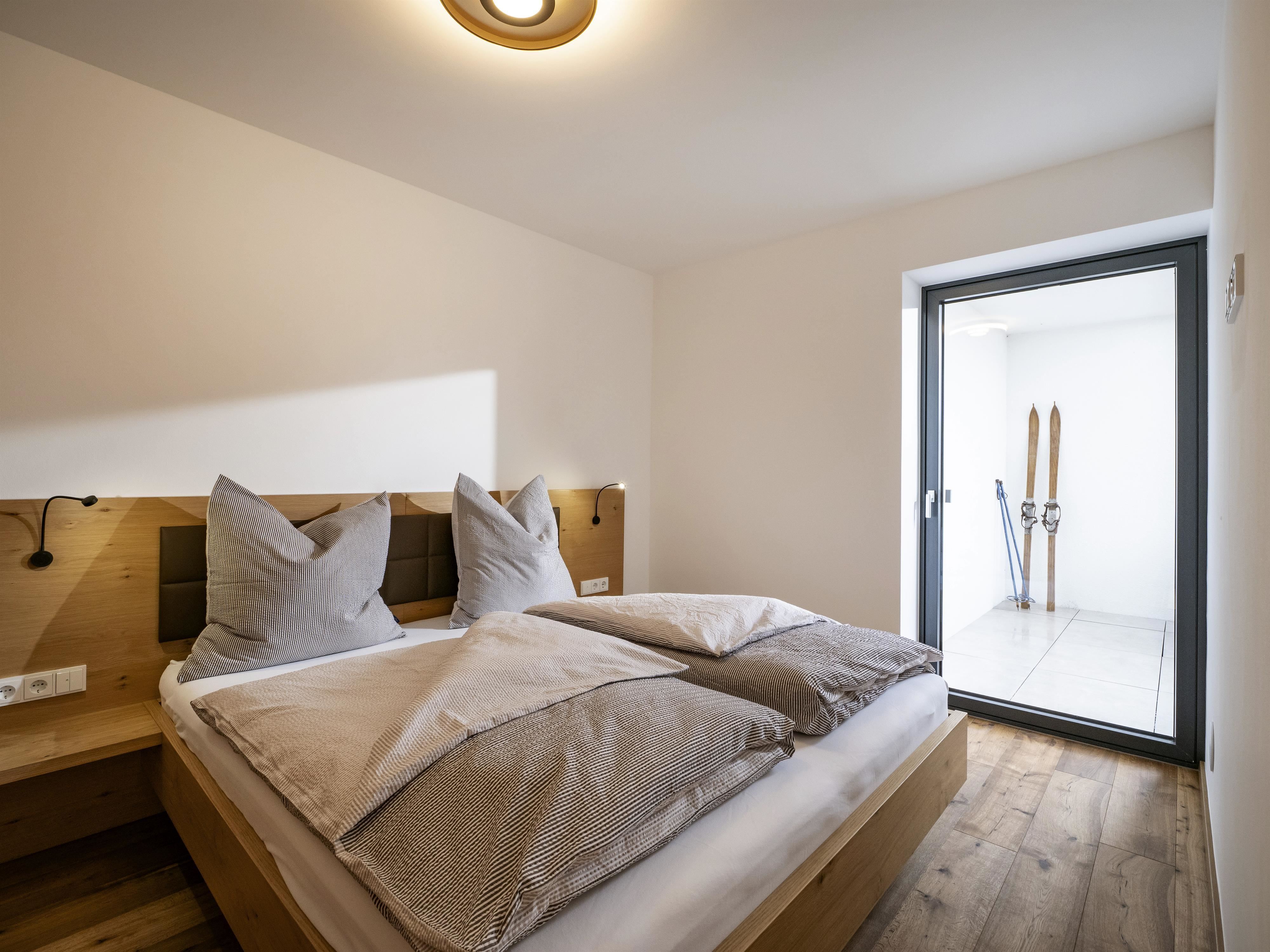 Unser Appartement "Koasa" verfügt über einen privaten Whirlpool auf der Terrasse, ein Schlafzimmer mit einem Doppelbett, ein Wohn- und Schlafraum mit einem Doppel-Wandbett und einem Badezimmer mit Dampfdusche.