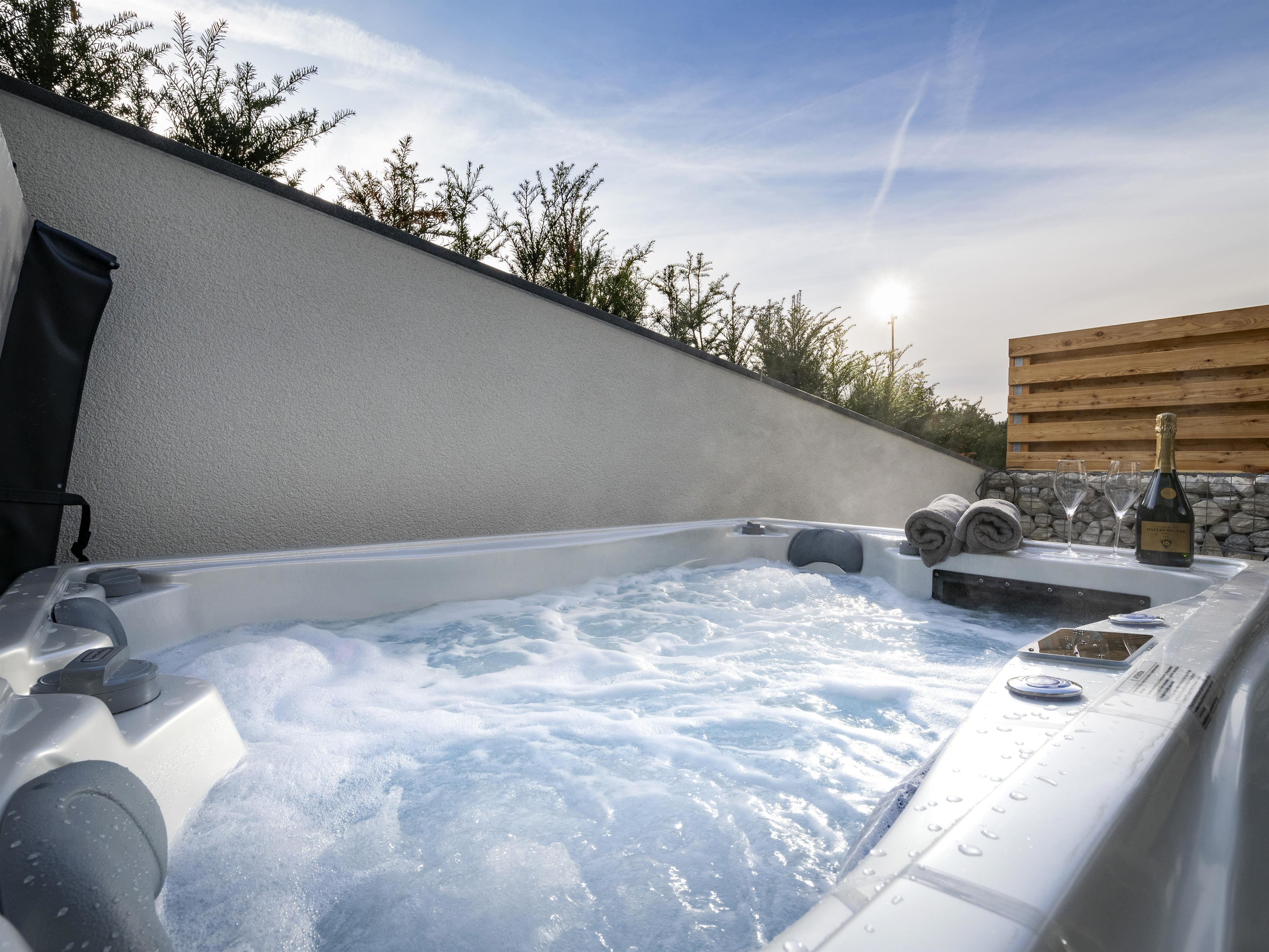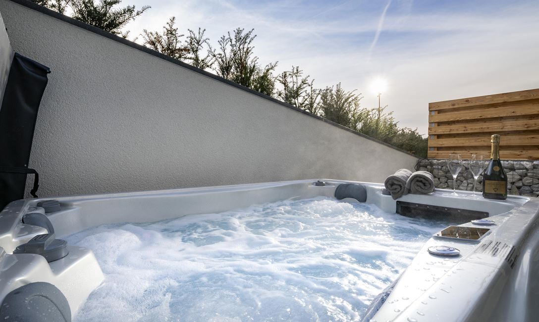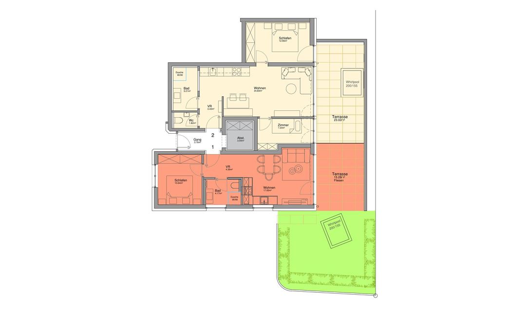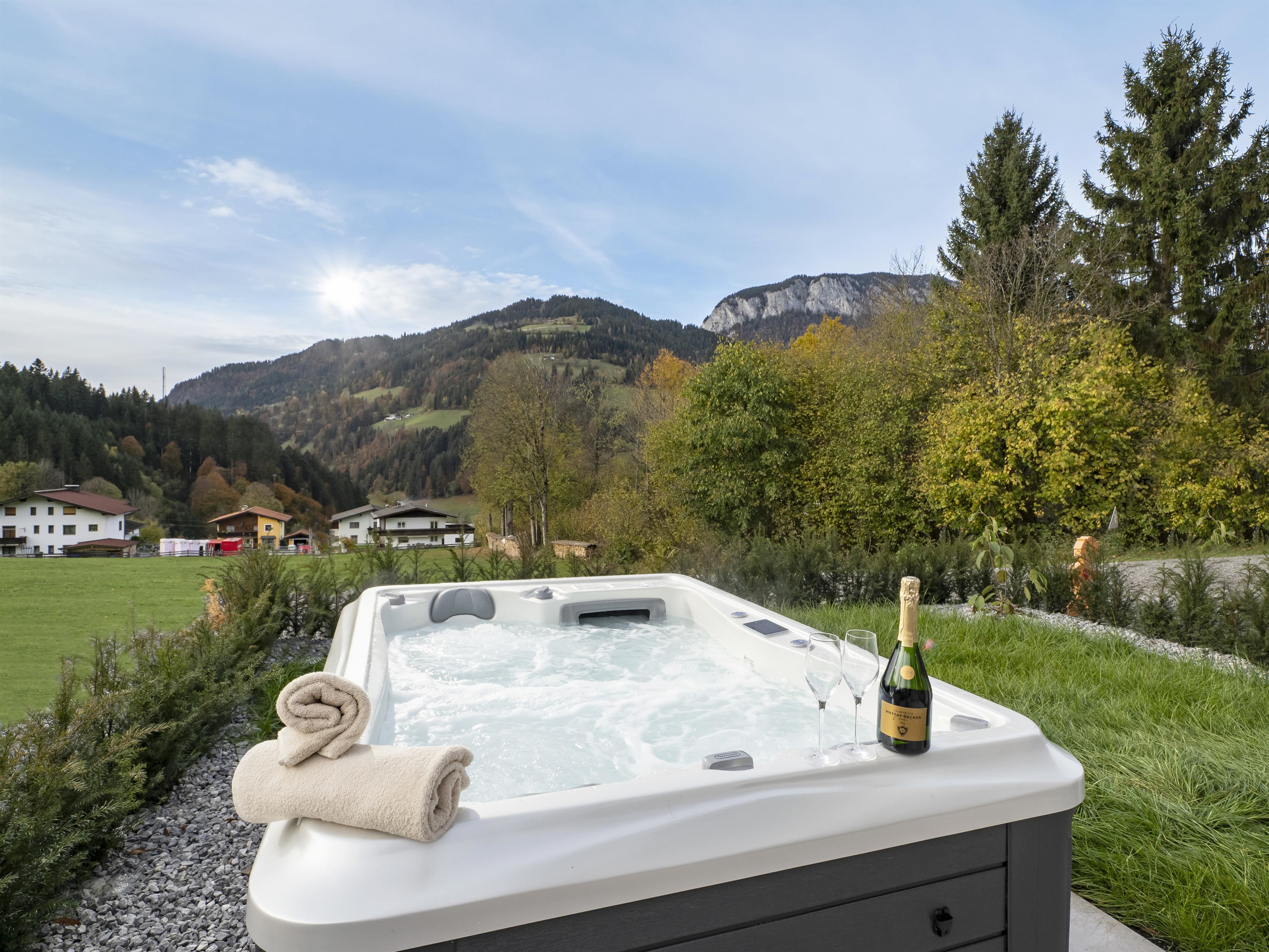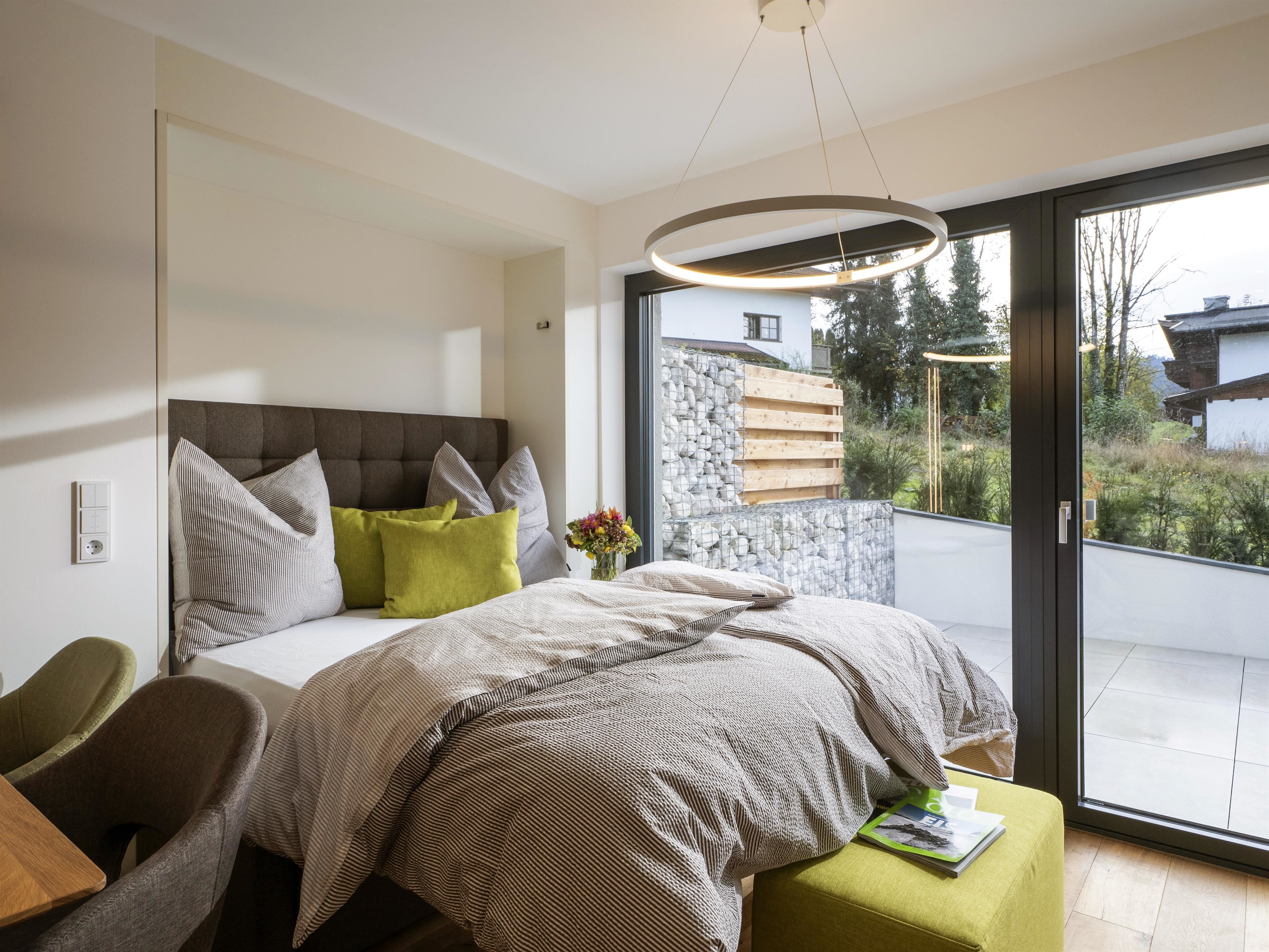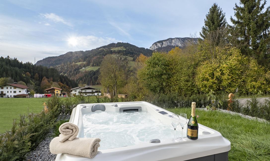 Unser Appartement "Koasa" verfügt über einen privaten Whirlpool auf der Terrasse, ein Schlafzimmer mit einem Doppelbett, ein Wohn- und Schlafraum mit einem Doppel-Wandbett und einem Badezimmer mit Dampfdusche.