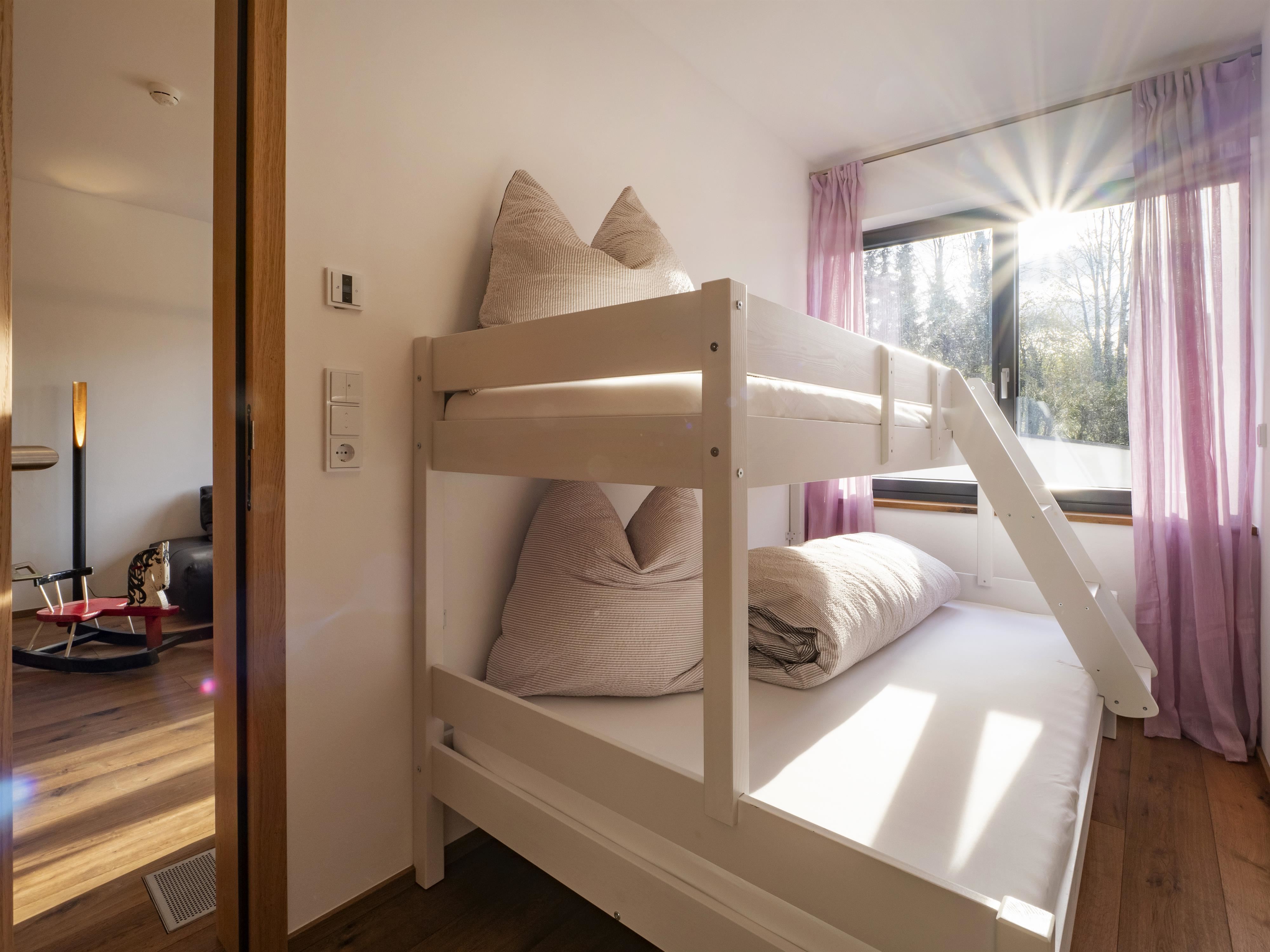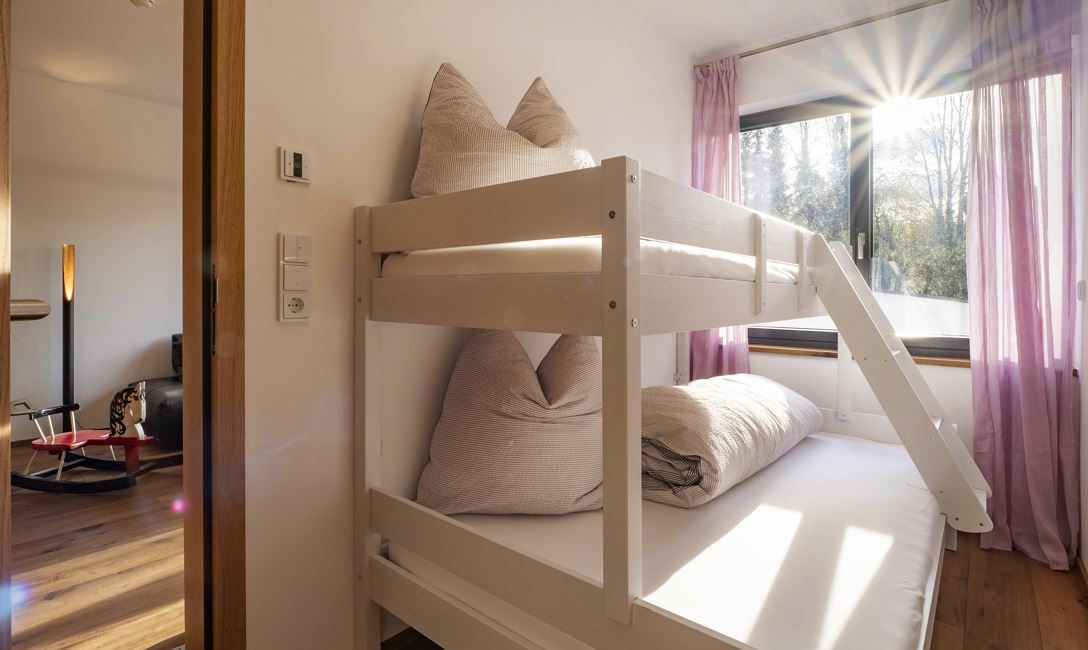 Unser "Platzhirsch" verfügt über 2 Schlafzimmern mit jeweils einem Doppelbett und einem Stockbett, wobei der untere Teil ebenfalls ein Doppelbett ist. In der Wohnküche kann zusätzlich die Couch als Schlafplatz für die 6. Person bezogen werden. Vorhanden ist ebenso ein privater Whirlpool auf der Terrasse, eine Wohnküche mit voll ausgestatteter Küche und einem Badezimmer mit Dampfbad.