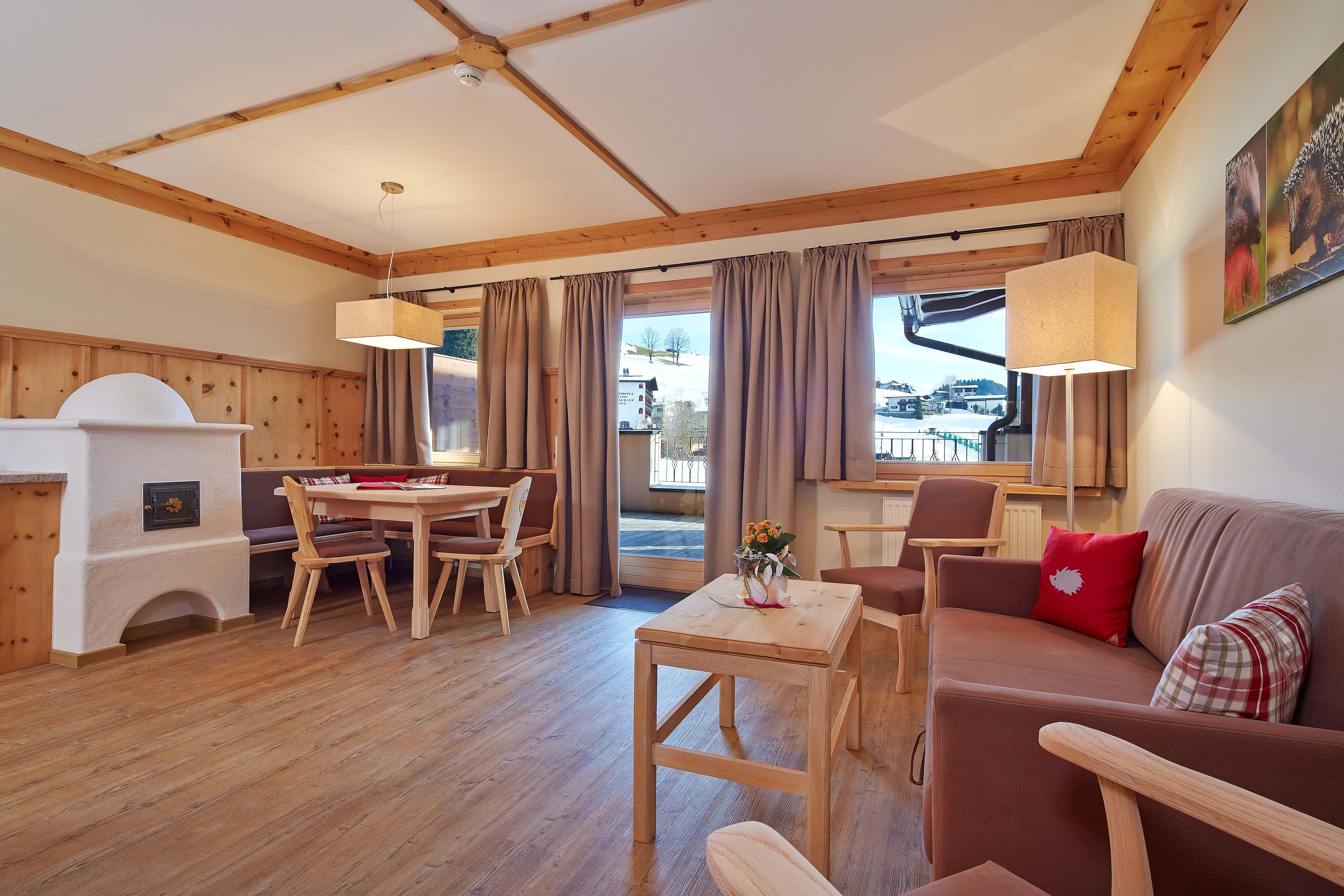 Großzügige Apartments für gemeinsame Zeit, die wirklich erholsam ist – mit Küche, Wohnzimmer und eigener Privatsauna.