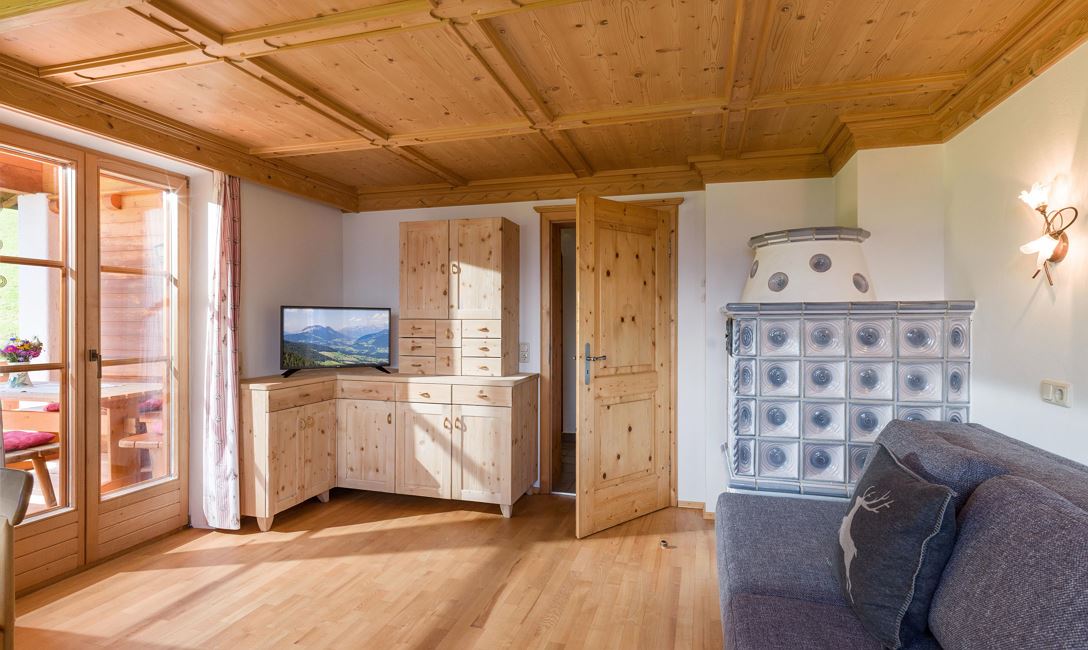 In unserer 80qm großen, komfortablen und großzügigen Hütte/Ferienhaus befindet sich eine bestens ausgestattete Wohnküche (Herd, Spülmaschine, Kaffeefiltermaschine, Wasserkocher, Toaster, Backofen, etc) mit Essplatz und Zugang zum Ost/Südbalkon. Der helle, große Wohnraum ist mit einem Kachelofen, großer Erker-Sitzbank, Sofa mit Bettfunktion, TV ausgestattet. In beiden Schlafräumen steht jeweils ein Doppelbett zur Verfügung. Weiters finden Sie ein Badezimmer mit Dusche und Badewanne und ein separates WC in unserer Hütte/Ferienhaus. Eine eigene Terrasse (uneinsehbar und mit großem Tisch und Liegesesseln ausgestattet) lädt zum Relaxen ein. Nichtraucherwohnung