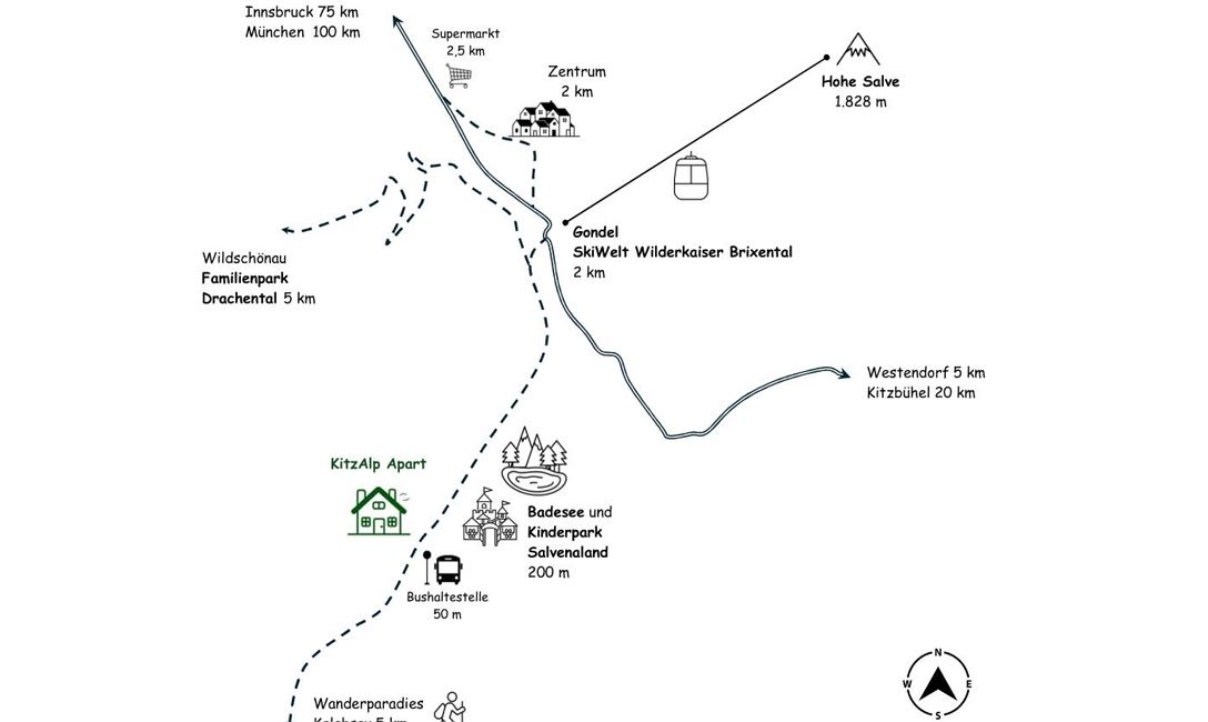 Die Region Hohe Salve in den Kitzbüheler Alpen beherbergt eines der größten und modernsten Skigebiete weltweit – die SkiWelt Wilder Kaiser - Brixental. Die SkiWelt Wilder Kaiser - Brixental lädt zu einem erlebnisreichen Skiurlaub im Winter ein. Im Sommer reichen die Wandergebiete in und rund um Angerberg vom Adlerweg am Buchacker über den Erlebnisberg Hohen Salve bis zum höchsten Gipfel der Kitzbüheler Alpen den Torhelm. In den Kitzbüheler Alpen finden Sie zu jeder Jahreszeit eine breite Auswahl an Freizeitmöglichkeiten wie Skifahren, Langlaufen, Winterwandern, Radfahren, Wandern, Schwimmen und vieles Mehr, um Ihren Urlaub abwechslungsreich und unvergesslich zu machen. Gästekarte Hohe Salve: Ab Wörgl ist mit der Gästekarte die Mobilitätsleistung mit Bus und Bahn in den gesamten Kitzbüheler Alpen inkludiert. Nutzen Sie diesen Pre-Check-In Service Ihrer Unterkunftgeberin/ Ihres Unterkunftgebers und reisen Sie entspannt und nachhaltig in Ihren autofreien Urlaub.