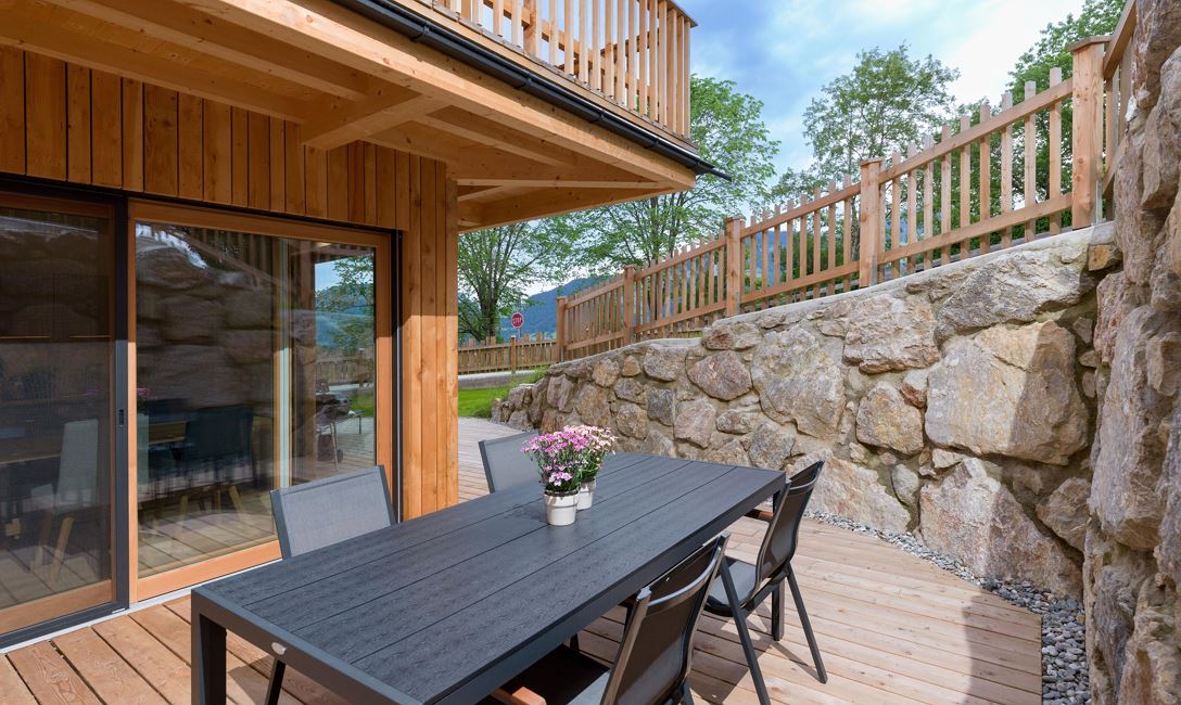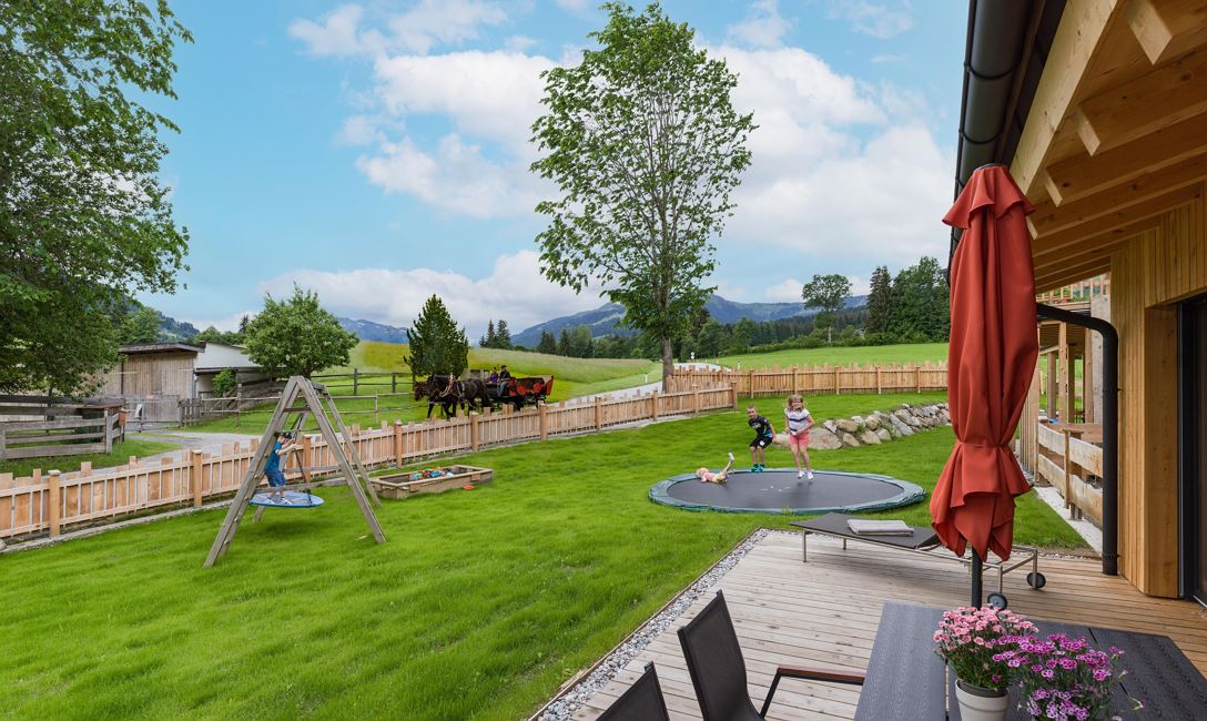 Von der Terrasse des Apartments Morgentau gelangen unsere Gäste direkt in den Garten und zum hauseigenen Spielplatz.