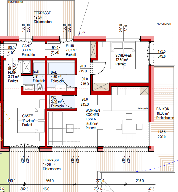Das Apartment Morgentau im Erdgeschoss eignet sich für max. 6 Personen und besteht aus einer eigenen Garderobe im Vorraum, einer großzügig, offen gestalteten Wohnküche mit Esstisch, ausziehbarer Couch und TV. Die 2 Schlafzimmer verfügen jeweils über ein Doppelbett und Kleiderschränke. Die Küche ist mit Geschirrspüler, Kühlschrank mit Tiefkühlfach, Herd, Backofen, Kaffeemaschine, Wasserkocher, Geschirr, Gläsern, Kochtöpfen, Kochutensilien und Besteck voll für Profi- und Hobbyköche ausgestattet