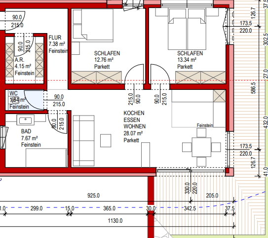 Mit einem Doppelzimmer und der ausziehbaren Couch im Wohnzimmer ist das Apartment für max. 4 Erwachsene bzw. 2 Erwachsene und 2 Kinder geeignet.