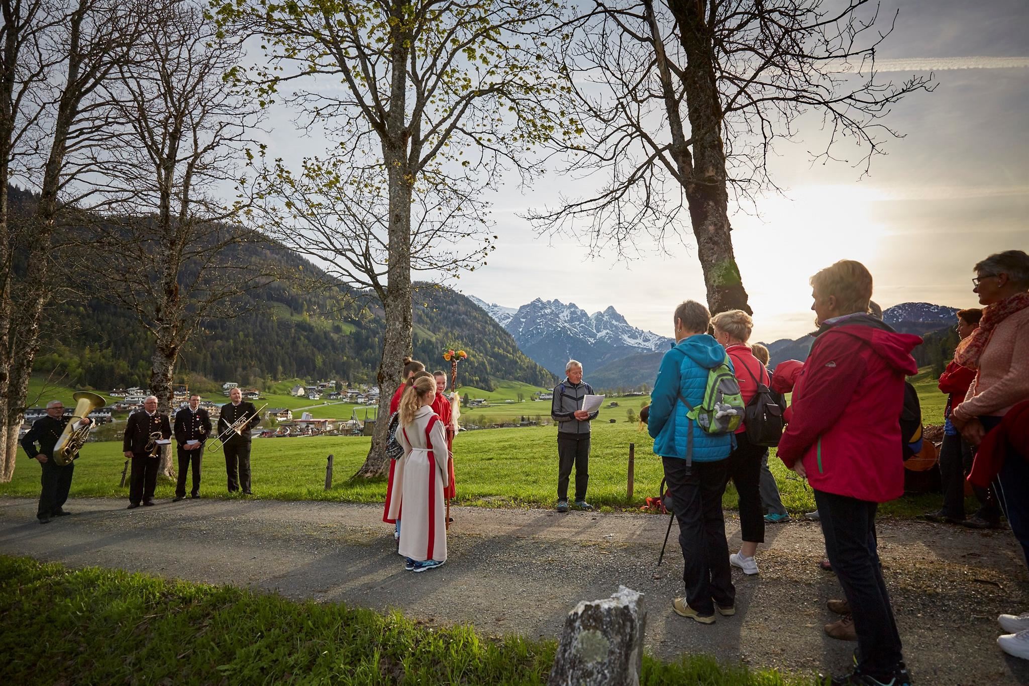 Abmarschzeiten: Fieberbrunn - Pfarrkirche 6:00 Uhr | Hochfilzen - Grieskapelle 6:45 Uhr | St. Jakob - Pfarrkirche 7:35 Uhr | Waidring - Pfarrkirche 9:00 Uhr | St. Ulrich Dorfplatz 9:00 Uhr | Heilige Messe in der Adolarikirche 10:30 Uhr