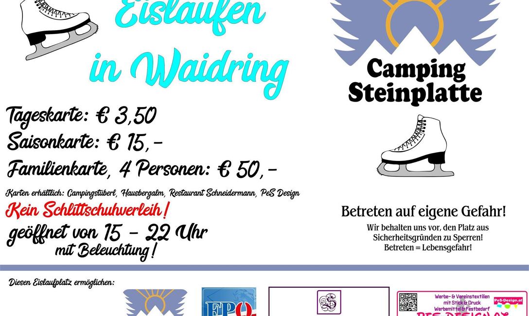 Kosten: Eintritt € 3,50, Saisonkarte € 15,00 | Kein Schlittschuhverleih vorhanden!