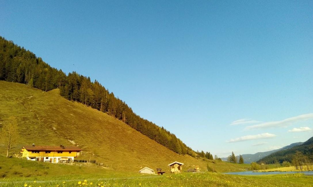 Genieße selbstgemachte Almprodukte auf der bewirtschafteten Seealm mit Ausblick auf das Grießner Hochmoor, leicht erreichbar am Skulpturenradweg Steinbergrunde zwischen Leogang und Hochfilzen | Selbstbedienung an der Mini-Bar mit Getränken, Eis und Snacks immer möglich.