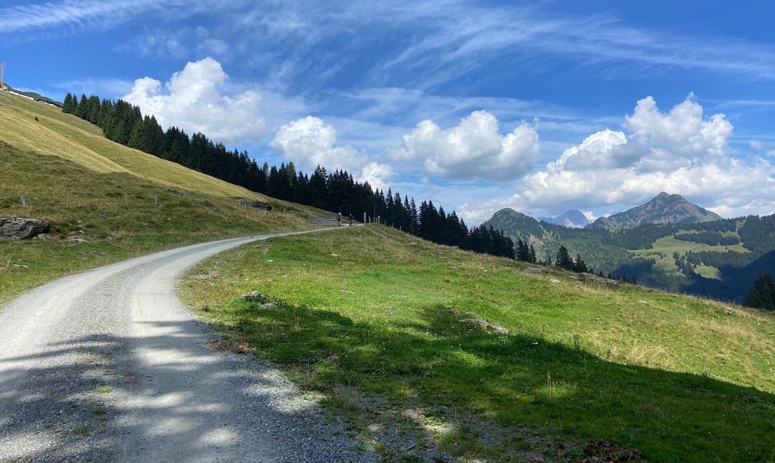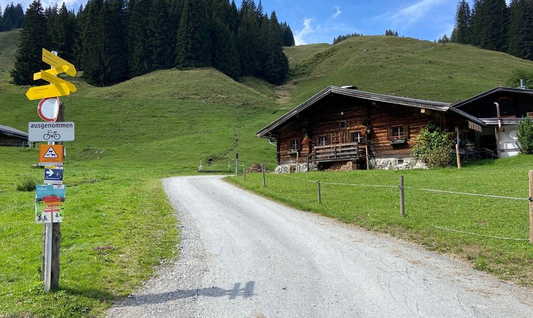 Ab hier beginnt die Tour zur Hochhörndler Hütte Nr. 2020. Den Weg weiter stetig bergauf taleinwärts biken. Ab den Grundalmen beginnt der Anstieg über die Serpentinen der Forststraße hinauf zur Hütte. Retour über die selbe Strecke zurück ins Dorfzentrum.