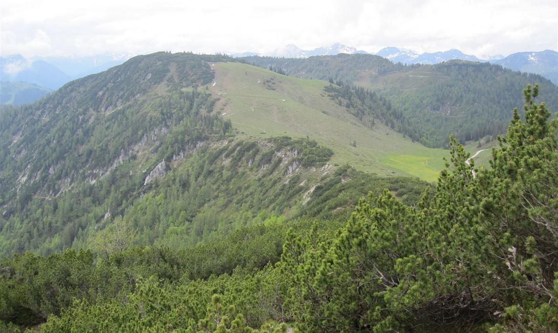 Der Weg führt zuerst durch einen urigen Mischwald auf den Hausberg. Am Gipfel angelangt schweift der Blick über das Fellhorn auf die Steinplatte. Unten im Tal starten die roten Gondeln der Bergbahnen Steinplatte und bringen Wanderer auf ein urzeitliches Korallenriff, das heute ein herrliches Wanderplateau mit gelebter Almwirtschaft ist. Im weitläufigen Triassic Park erforschen nicht nur junge Besucher spielerisch die Urzeit. Ein letztes Mal blickt man vom Hausberg zurück nach Waidring.