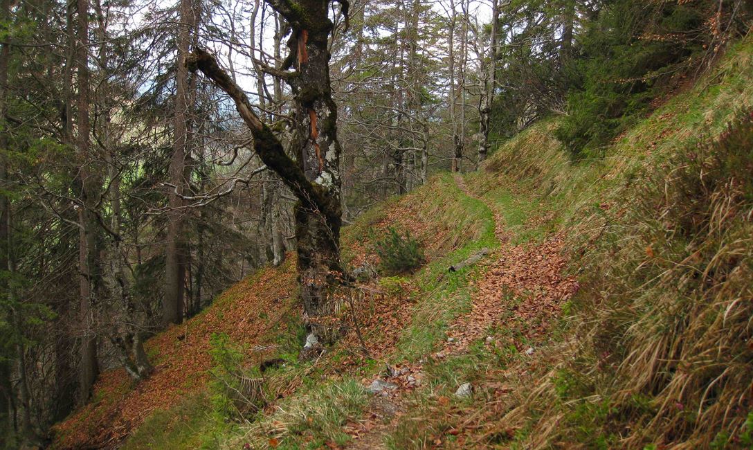 In Oberwarming / Tour Rast (Imbiss) nach der Brücke rechts ca. 300 m bachaufwärts dem Forstweg folgen, bei der ersten Weggabelung links halten und nach dem ersten kurzen Anstieg rechts querfeldein dem Wanderweg folgen. Oben auf dem Hüttenboden angekommen, biegen Sie links ab und wandern weiter bis zum Wiesensee. Von hier geht es auf dem Rundweg Buchensteinwand wieder zurück zum Ausgangspunkt.