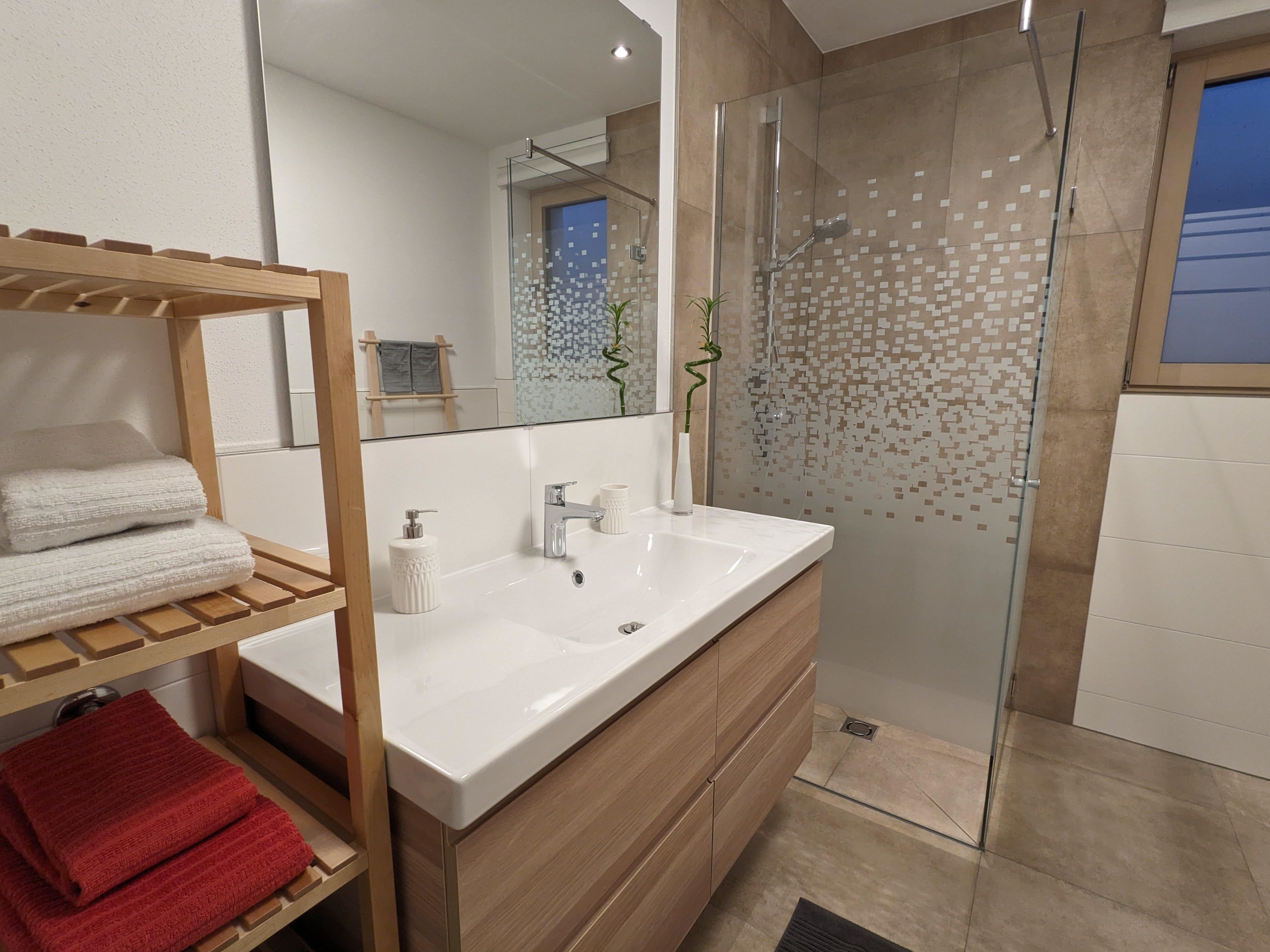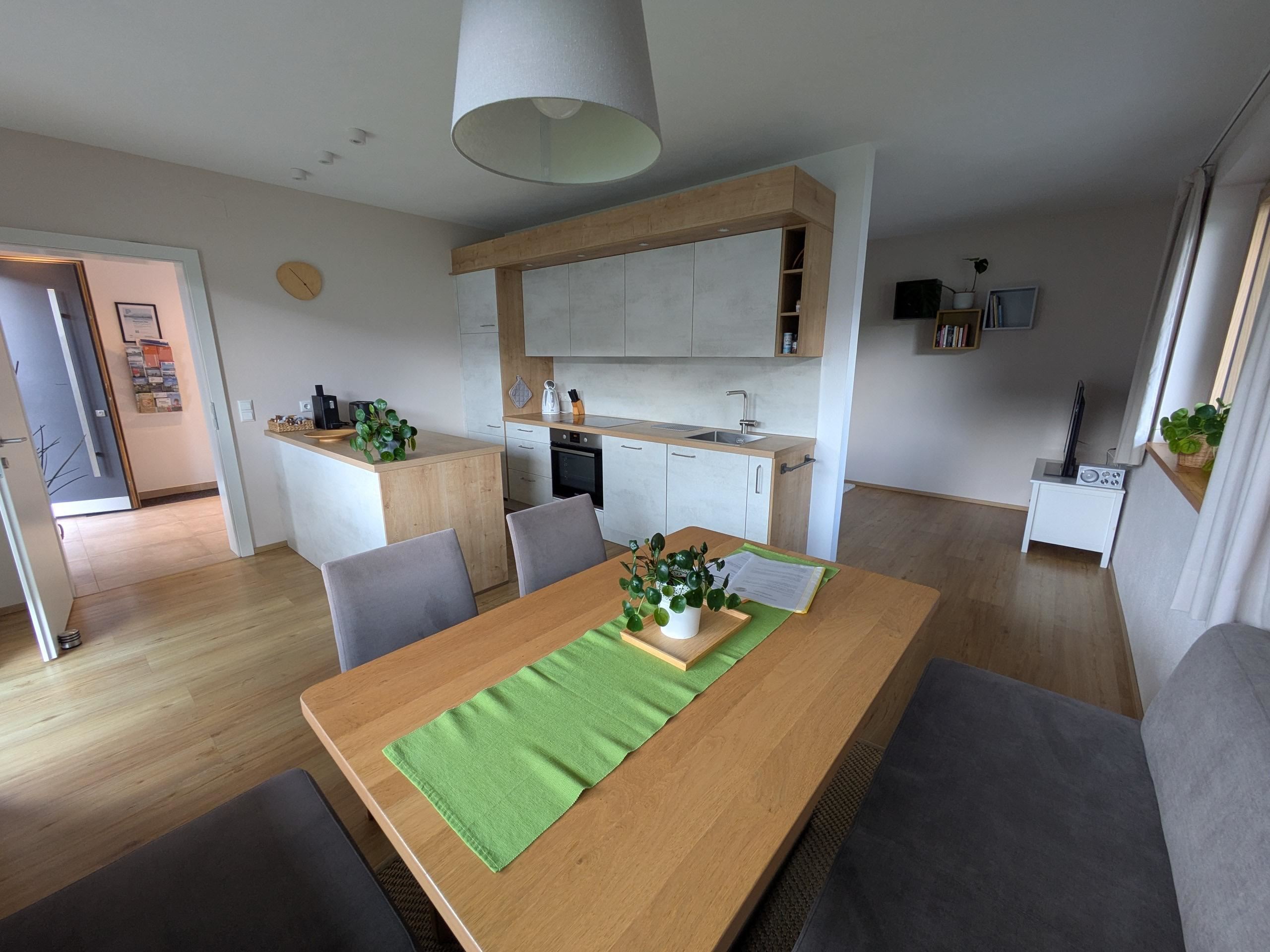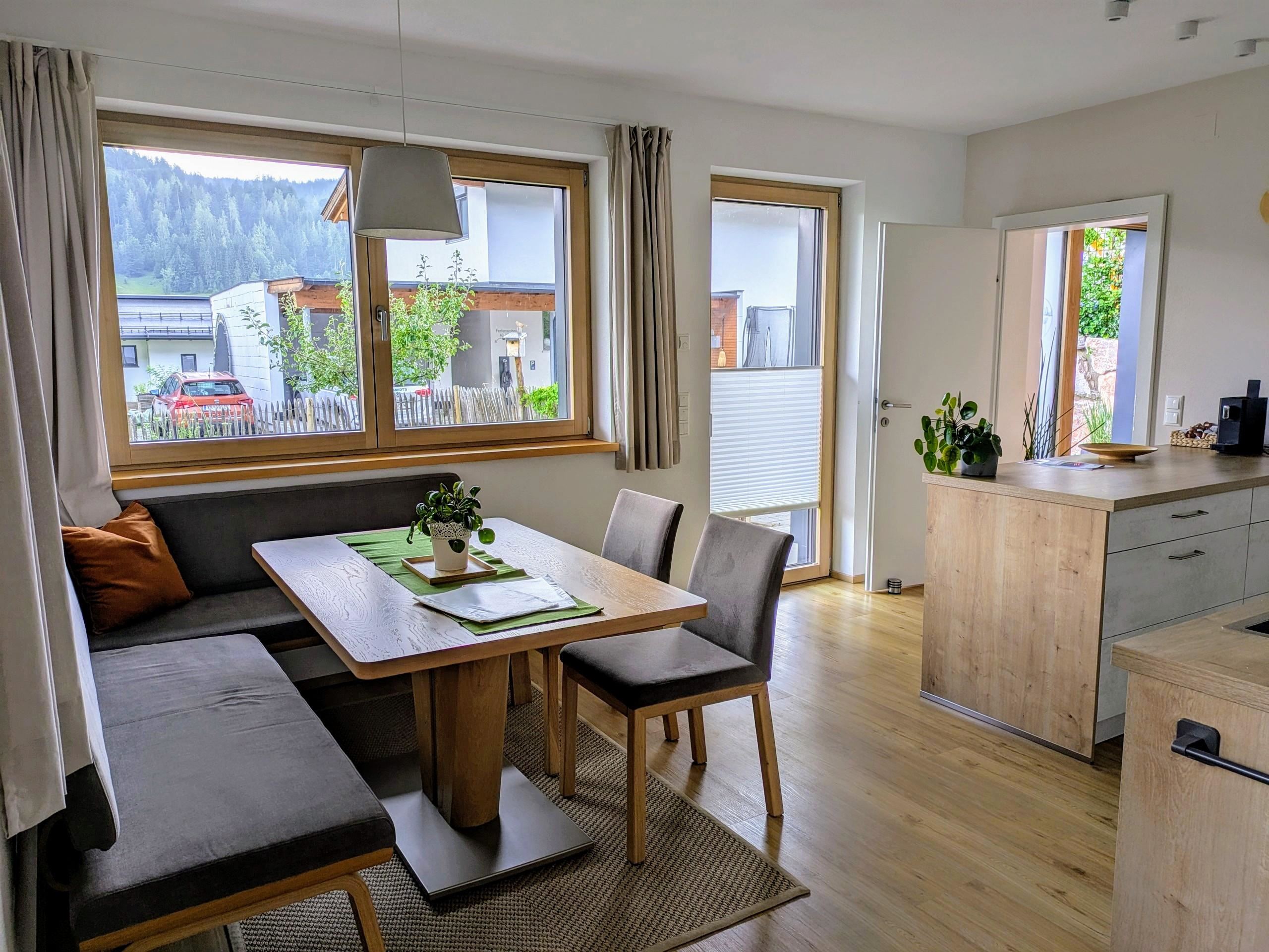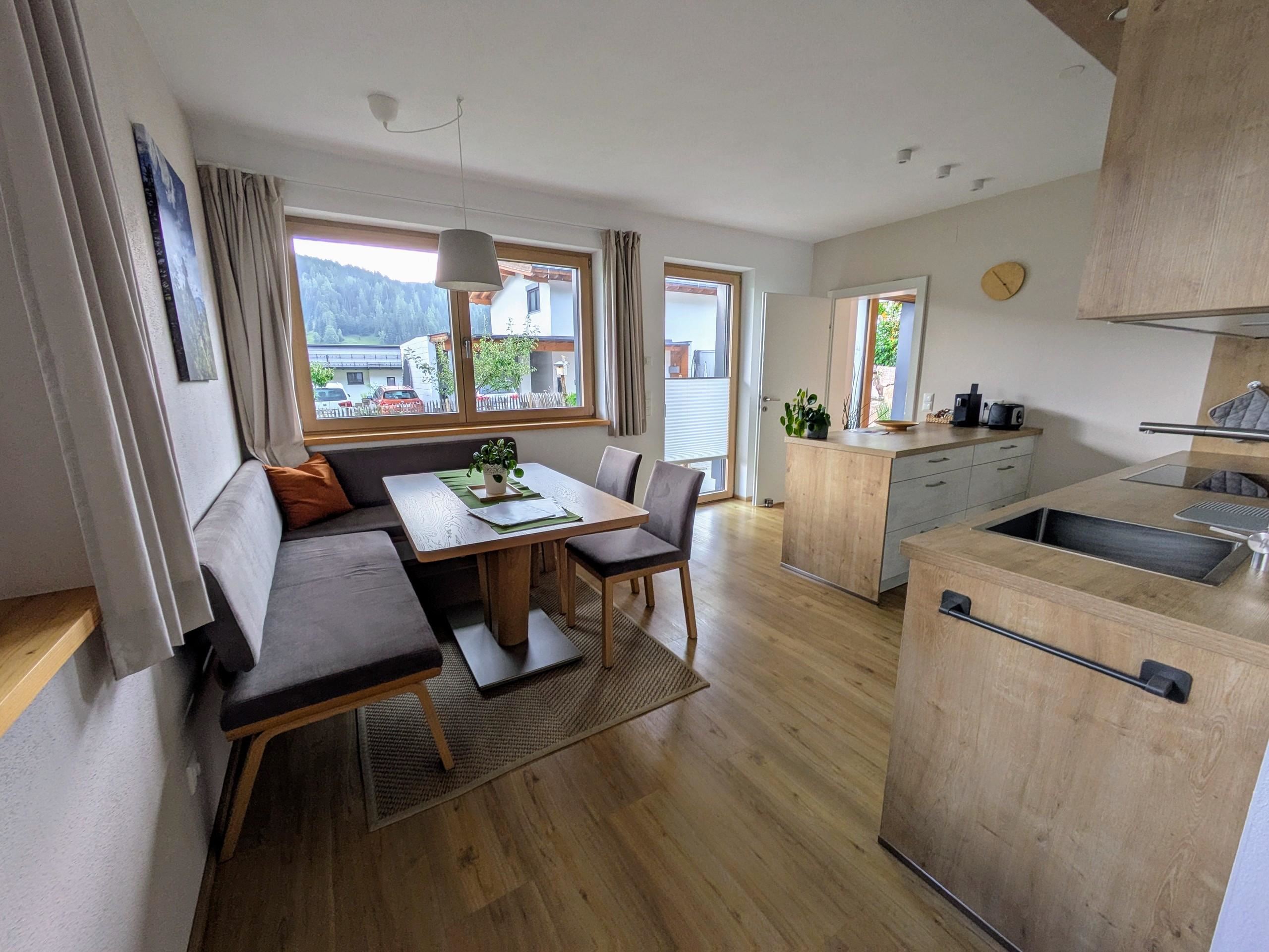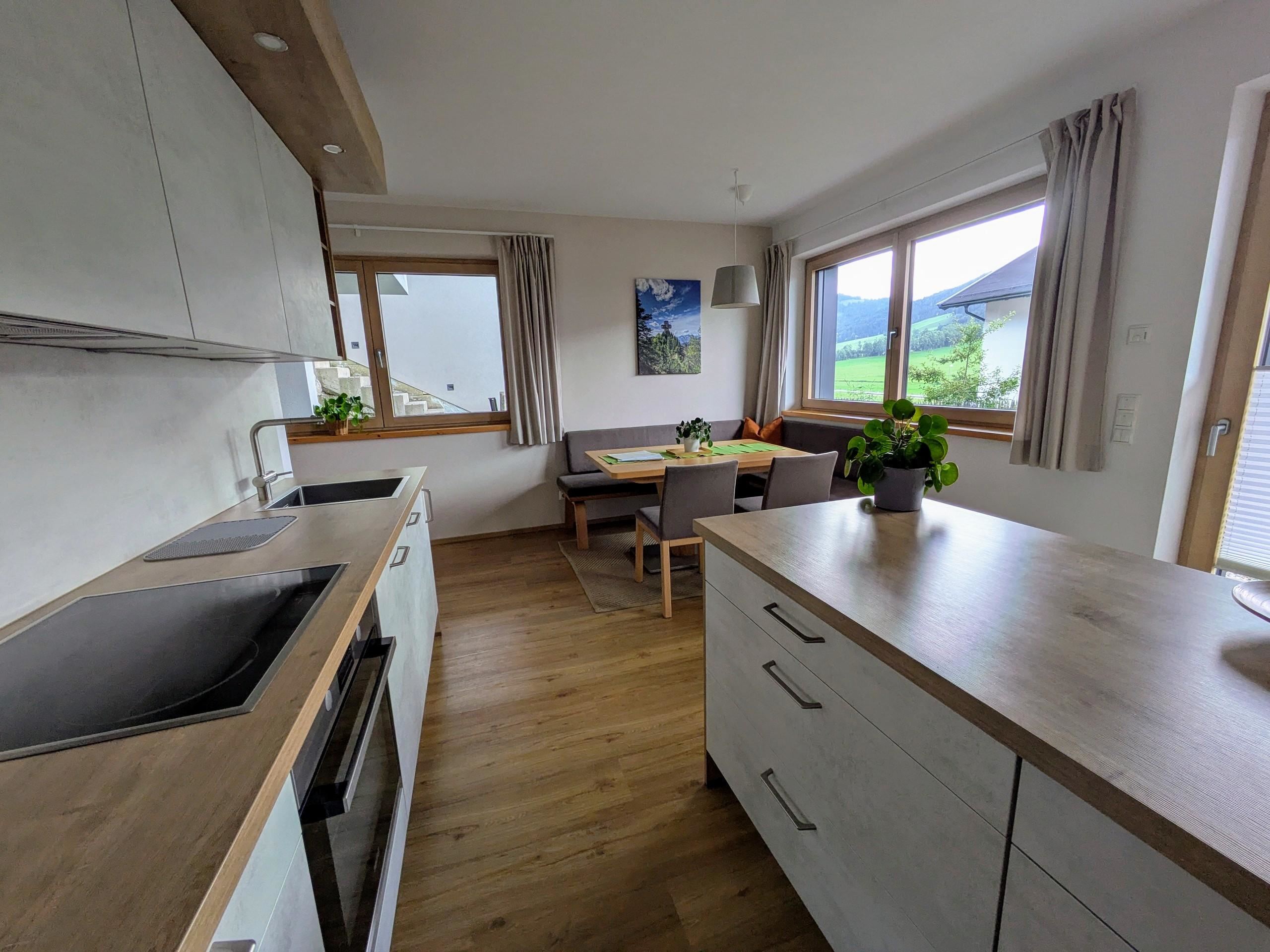 Sie erreichen das im Jahr 2020 neu errichtete, großzügig und modern eingerichtete Appartement (75m²) über einen eigenen, barrierefreien Eingang. In der Unterkunft erwartet Sie ein gut ausgestatteter Koch- und Essbereich, ein Wohnzimmer mit TV und ausziehbarem Sofa, zwei Schlafzimmer (jeweils mit Doppelbett), ein Bad mit Dusche, sowie ein separates WC. Der von außen zugängliche Abstellraum bietet Platz für Fahrräder, Ski oder sonstiges Equipment. WLAN steht Ihnen in der gesamten Wohnung kostenfrei zur Verfügung. Der Garten mit privatem Terrassenplatz lädt nach einem ereignisreichen Tag zum Spielen und Verweilen ein. Der Parkplatz für Ihr Fahrzeug (2 Stellplätze) befindet sich direkt vor der Unterkunft (kostenfrei).