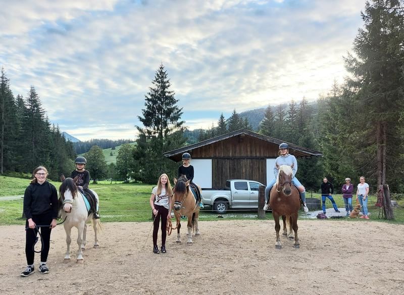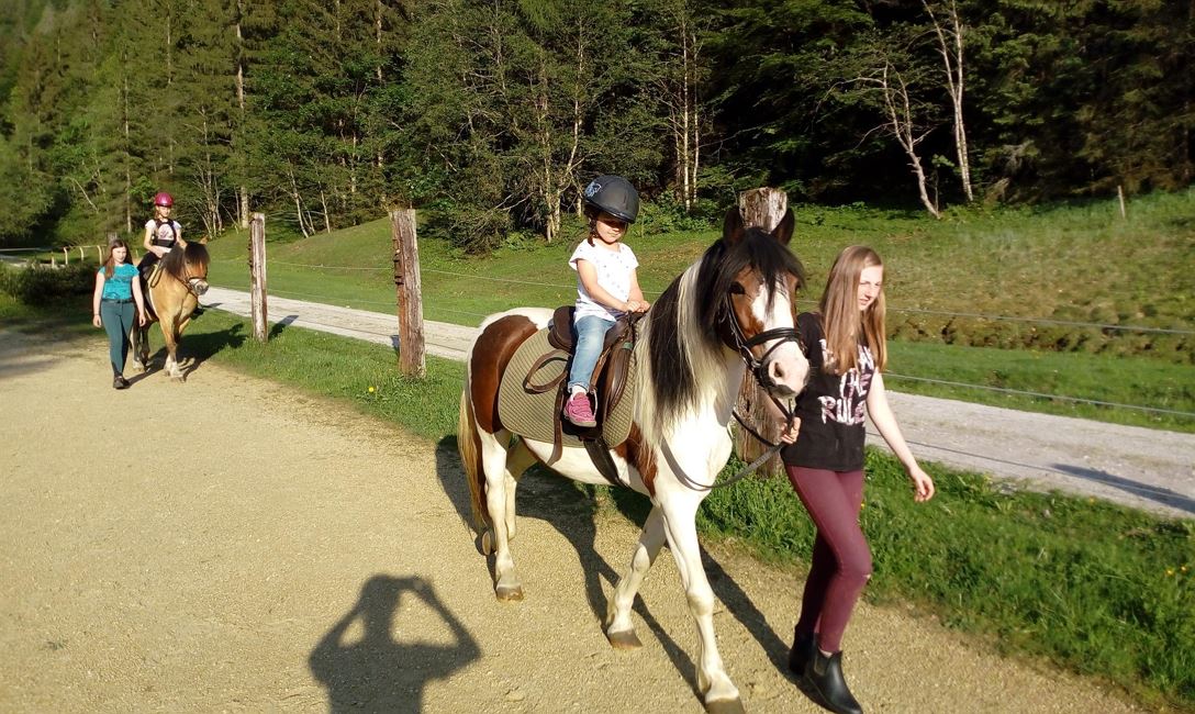 - Geführtes Reiten auf dem hofeigenen Reitplatz im Juli und August 1-2x wöchentlich am Abend mit unseren braven kinderlieben Pferden "Kokosch", "Indian" und "Kamilla" (pro Reiten/Kind EUR 12,-) | Mai, Juni, September, Oktober geführtes Reiten auf Anfrage.
