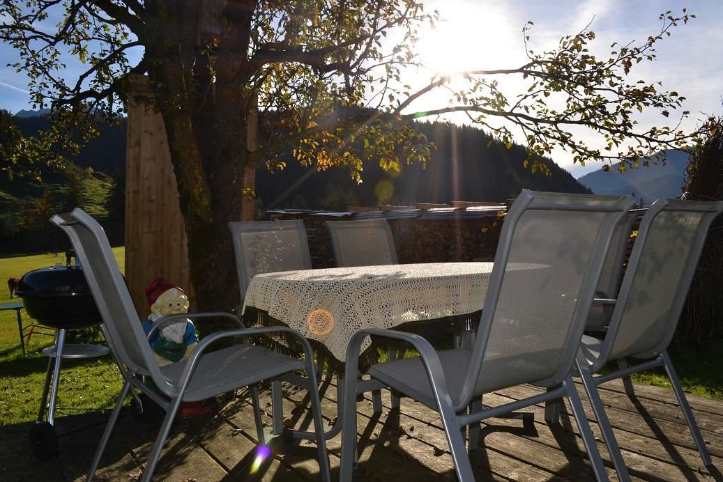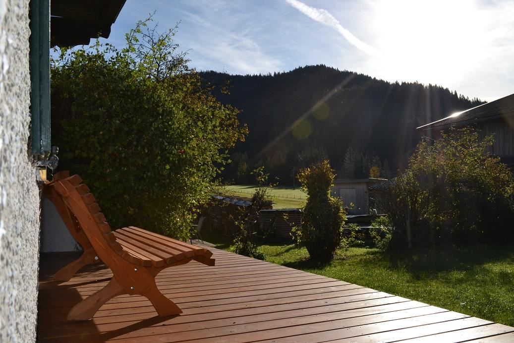 - Sonnige möbelierte Terrasse im Garten