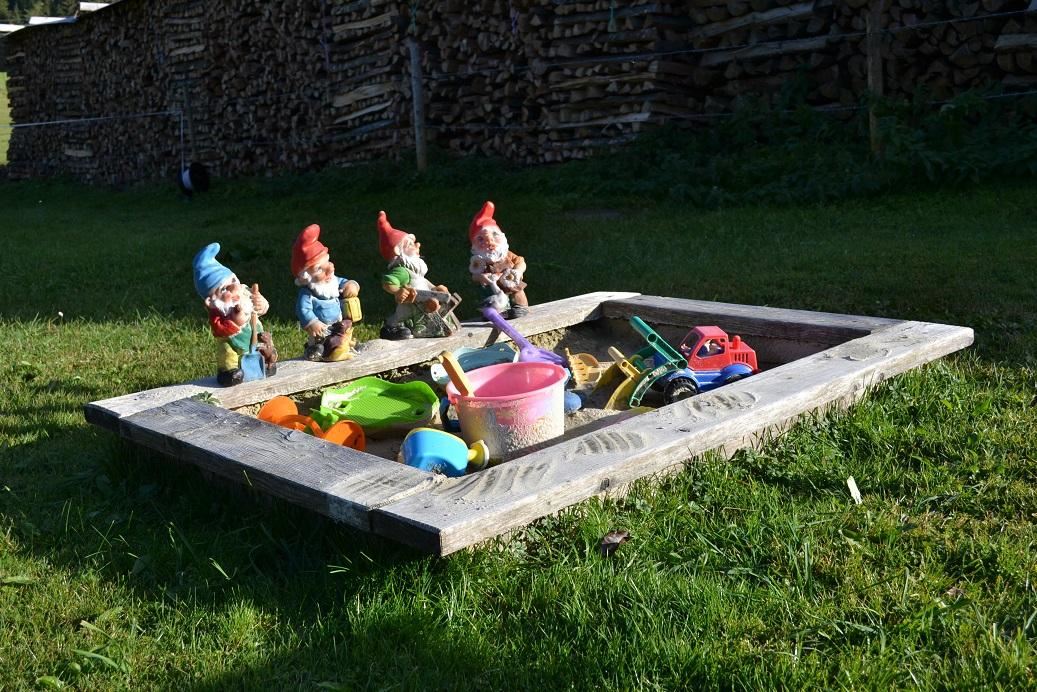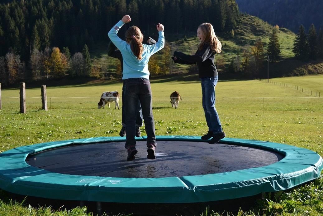- Kinderspielplatz mit großem Bodentrampolin, Sandkasten, Schaukel, Rutsche und Wippe
