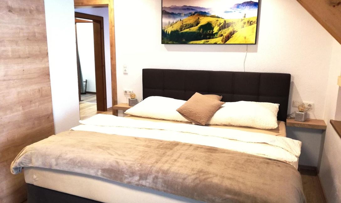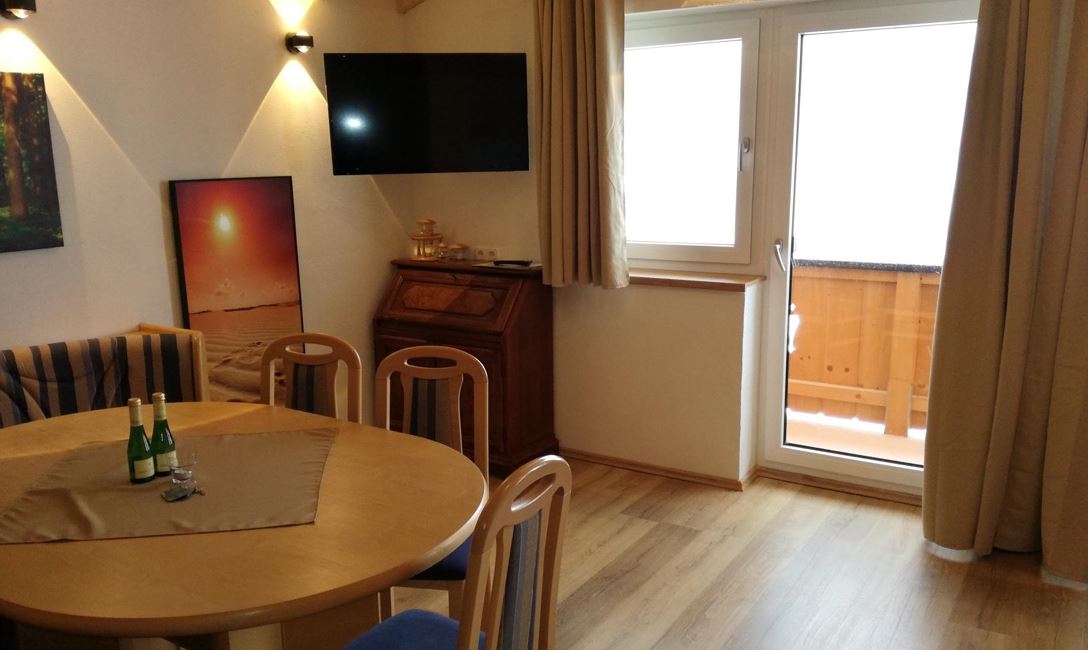 Gemütlich eingerichtete Wohnung mit: Vorraum, 2 Schlafzimmer mit Doppelbett, Wohnzimmer mit Ess- und Sitzecke, Kochnische, Dusche/WC, im 2. Stock mit Balkon, im Parterre mit Terrassenbenützung auf der Südseite; ca. 65 m². Alle FeWo-s sind mit Geschirrspülmaschine, Backofen, Kabel-TV, Radio, W-Lan, Bettwäsche, Handtücher, Haarfön ausgestattet!