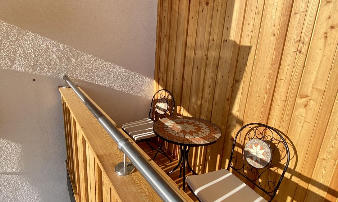 Das 35 m² große Appartement verfügt über einen eigenen Zugang, einen großen Wohn-Schlafbereich mit komplett ausgestatteter Küchenzeile, Essbereich und ausziehbarer Couch, einem Badezimmer mit Dusche und einem Südbalkon mit Bergblick.