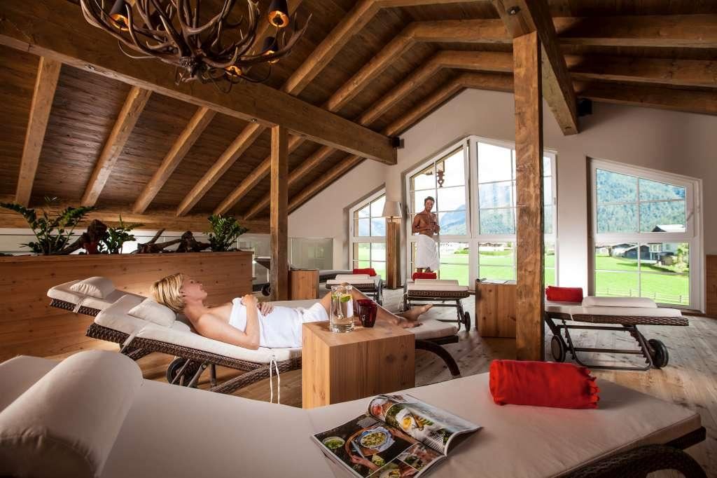Frühstücksbuffet, großer Wellnessbereich mit Saunadorf, Hallenbad, verschiedenen Ruheräumen, SPA mit Massage und Kosmetikbehandlungen im Sommer Liegewiese exklusiv für Erwachsene, Naturbadeteich Kinderspielplatz, Kinderspielzimmer, Kindermenü kostenloses W-Lan Aktivprogramm mit Gästebetreuerin Haustiere € 18,- pro Tag ohne Futter Weitere Zimmerkategorien und Pauschalangebote unter www.waidringerhof.com