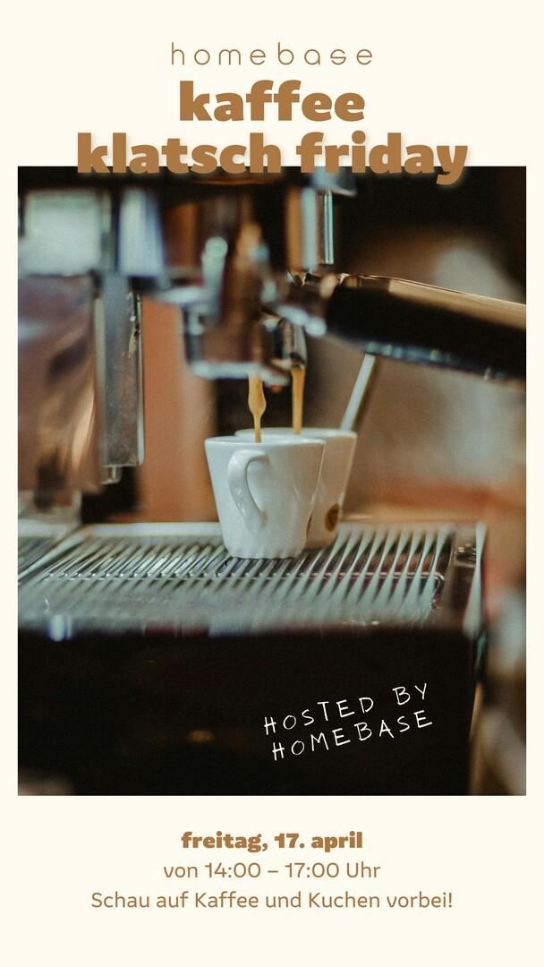 Dieses Mal betreut das Team "Homebase" den Kaffeeeeklatsch und sorgt für gastfreundliche Wohlfühl-Atmosphäre, süße Köstlichkeiten für euer leibliches Wohl vor Ort und erzählt euch mehr über die "Homebase".