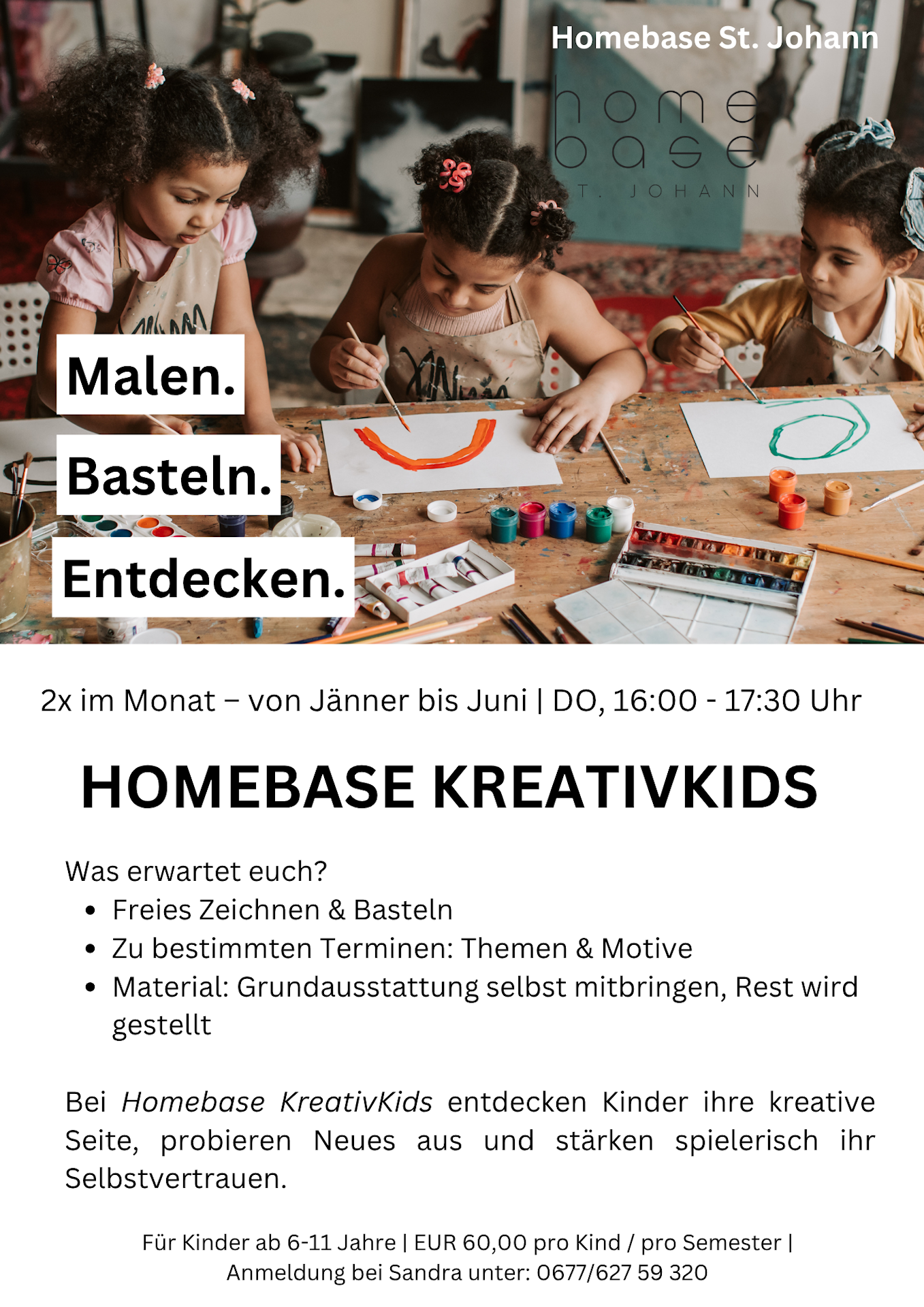 Telefon: +43 676 88 69 07 60Telefon(mobil): +43 664 2304430Email: office@homebase-stjohann.atÄhnliche Veranstaltungen