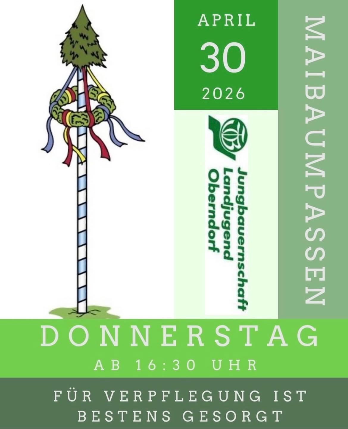 Die Landjugend Oberndorf ladet ein zum Maibaumfestl im Dorfzentrum von Oberndorf.