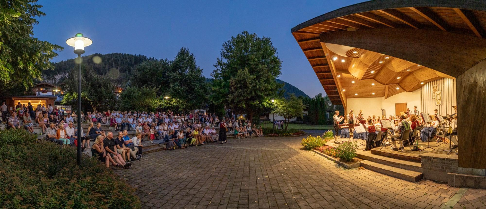 Im Ortszentrum von Erpfendorf finden beim Musik-Pavillon mit Stufen-Arena die beliebten Platzkonzerte unter der musikalischen Leitung von Hannes Langreiter statt. Die Erpfendorfer Musikantinnen und Musikanten tragen ein unterhaltsames wie abwechslungsreiches Programm mit typischer Blasmusik und modernen Stücken vor.