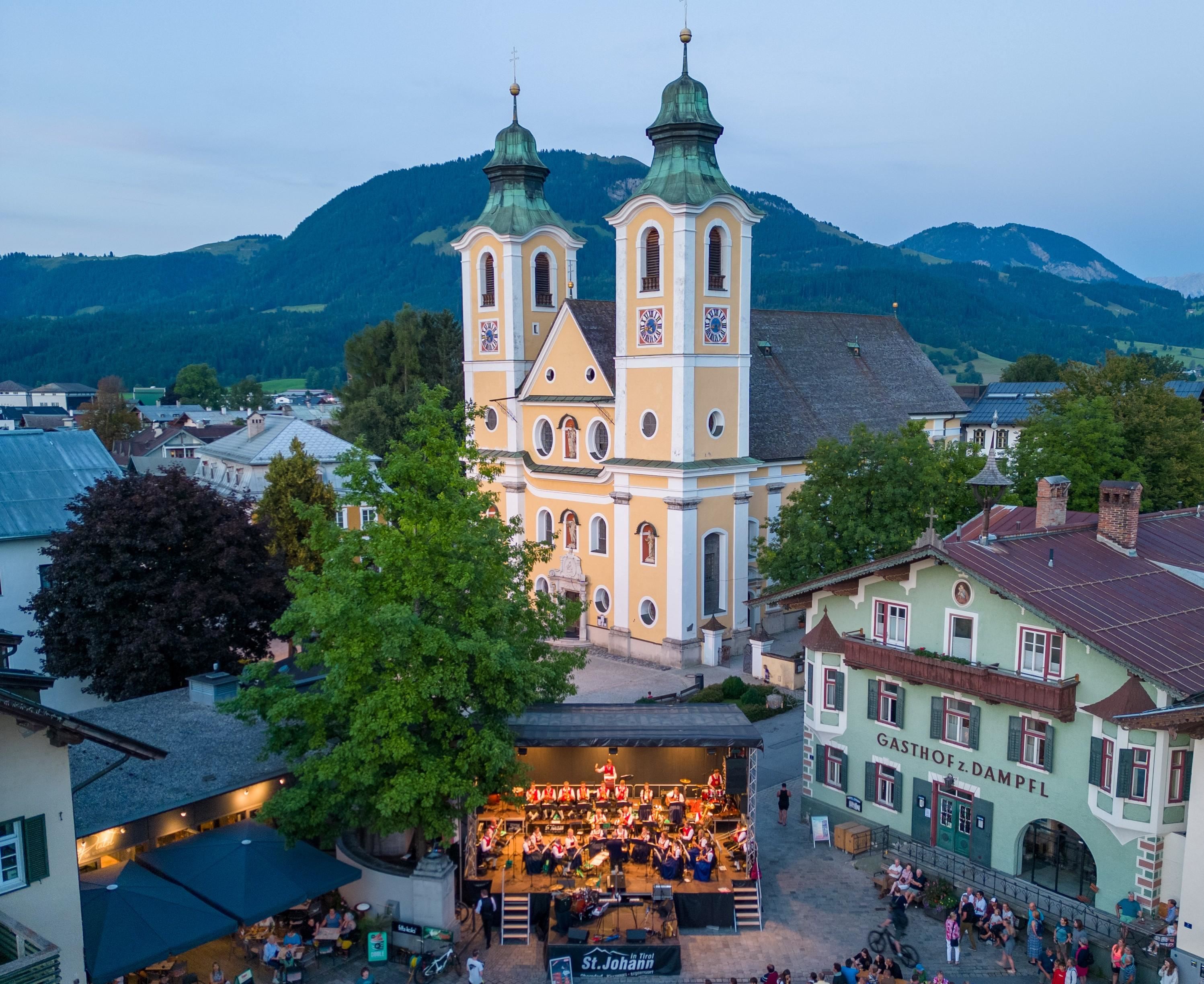 Jeden Freitag erwartet die Besucher ab 20 Uhr am Hauptplatz ein abwechslungsreiches musikalisches Programm bei den Sommerkonzerten der Musikkapelle St. Johann. Das Programm der Musikkapelle reicht dabei von traditioneller Blasmusik mit Märschen und Polkas, über Klassik mit Werken von Johann Strauß oder Giuseppe Verdi bis hin zu modernen Klängen aus aller Welt, von Moskau über Afrika bis nach Lateinamerika. Dabei erklingen Gesangsnummern von Udo Jürgens oder Frank Sinatra ebenso wie Jazziges oder Melodien von James Last. Freuen Sie sich auf ein Feuerwerk der Melodien im unvergleichlichen Ambiente des St. Johanner Hauptplatzes.