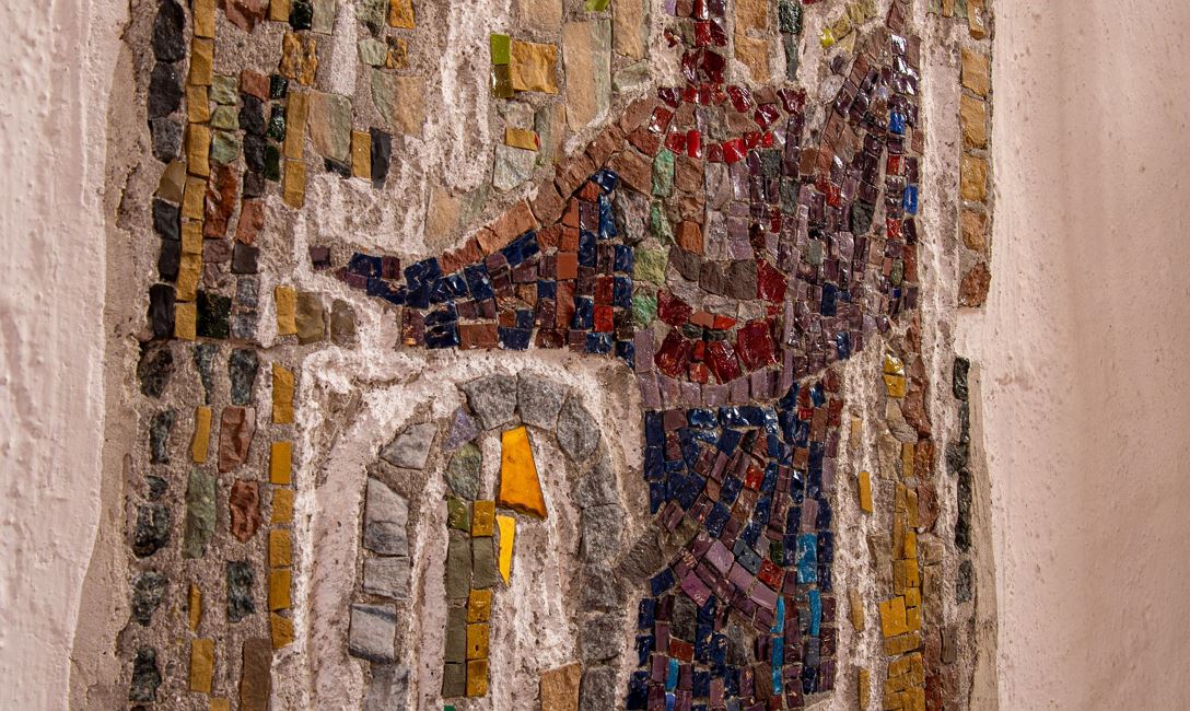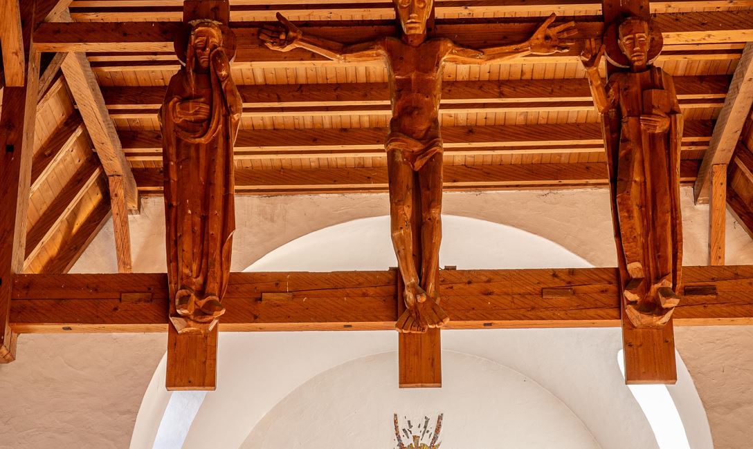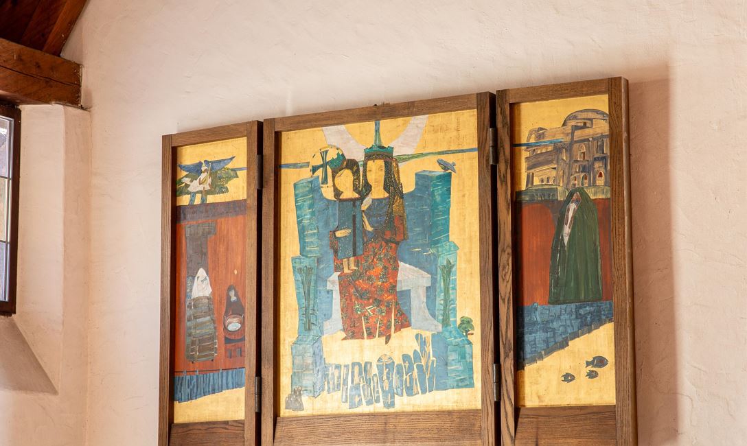 Die Kreuzwegstationen wirken in ihren dichten, auf Goldgrund gemalten Kompositionen wie Ikonen. Der Marien-Flügelaltar zeigt neben der von Engeln flankierten Madonna mit Kind, auf dem linken Flügel die Geburt Mariens und auf dem rechten Flügel die Begegnung Marias mit Elisabeth, auf der Außenseite der beiden Flügel die Verkündigung an Maria durch den Erzengel Gabriel.