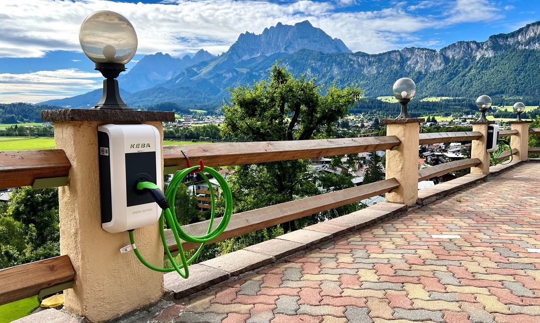 Drei Ladestationen mit einer Ladeleistung von bis zu 11 kW und 6 m langen Ladekabel mit der Ladekupplung Typ 2.