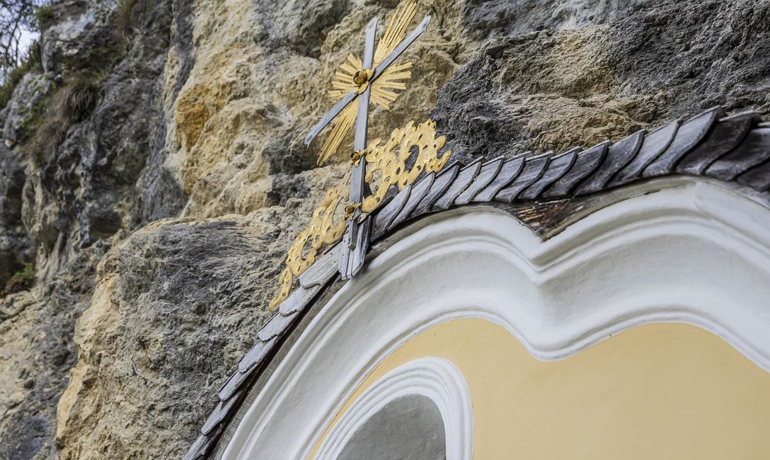 Etwas unterhalb der Kapelle in Richtung Kirchdorf befindet sich die Lourdesgrotte: Ein St. Johanner stellte als Dankeschön für seine Genesung nach einer Pilgerfahrt nach Lourdes eine Marienstatue in einen Felsvorsprung.