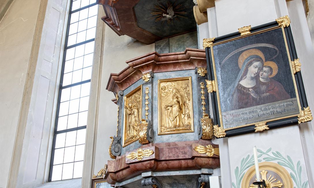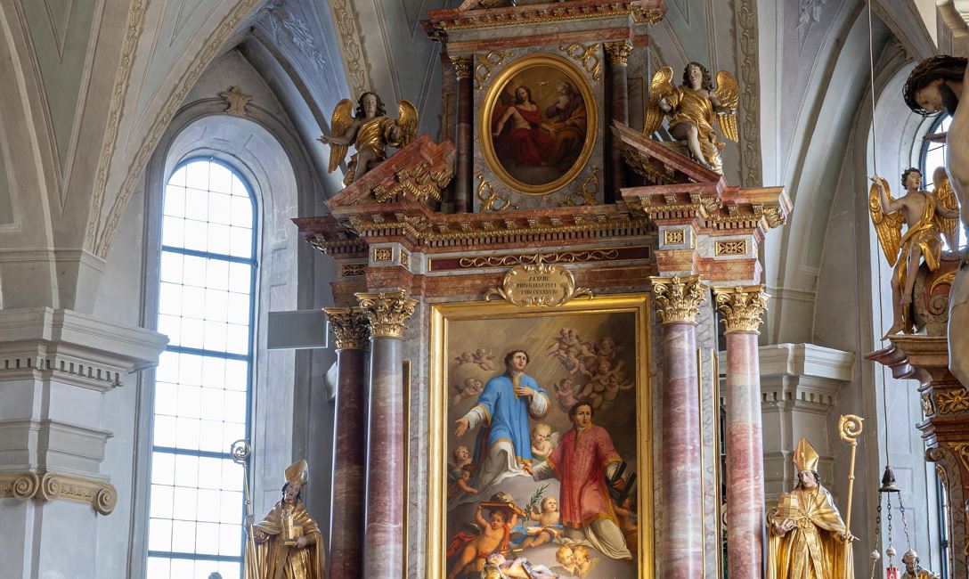 Die Bilder der Altäre malte Johann Endfelder – am Hochaltar die beiden Kirchenpatrone Stephanus und Laurentius und die Hl. Dreifaltigkeit.