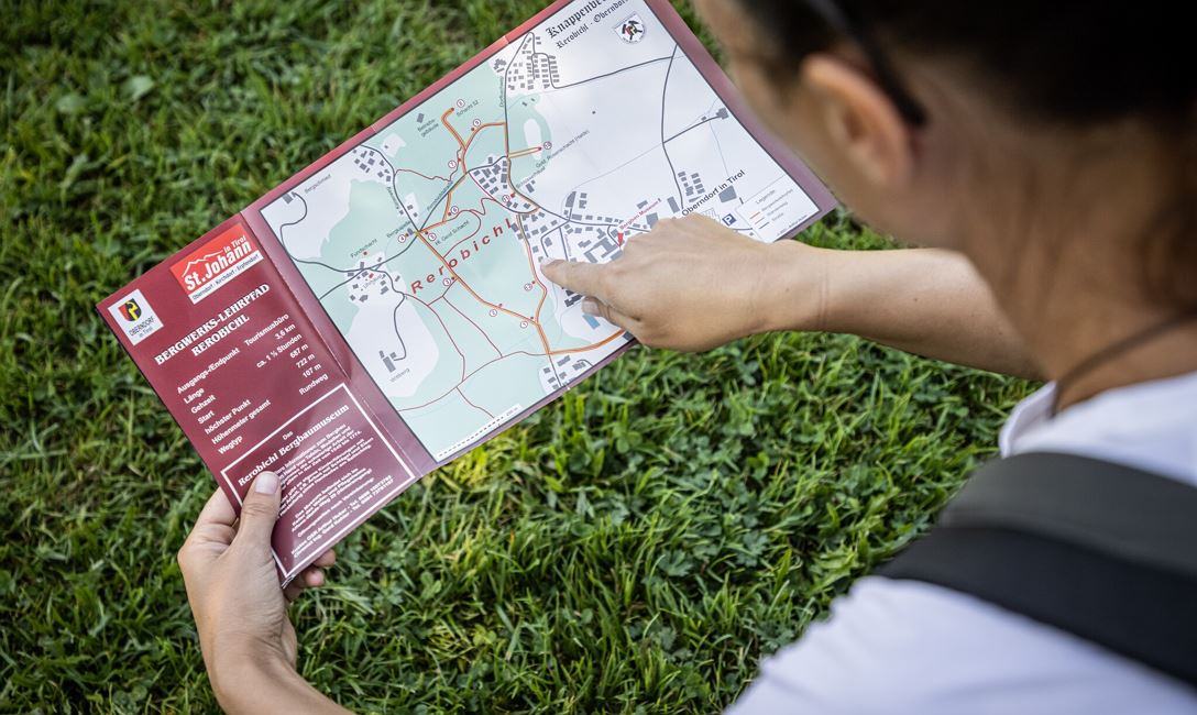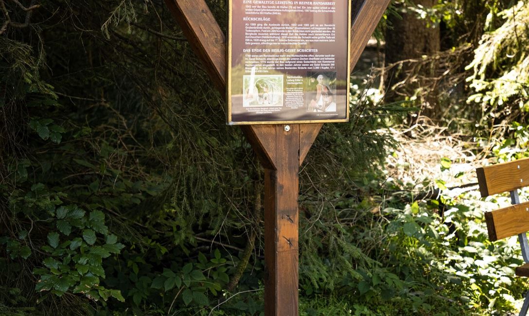 Startpunkt ist beim Infobüro Oberndorf in Tirol. Am Bichlachbad vorbei folgen Sie dem Alfons-Walde-Weg und halten sich dann rechts in Richtung Bergkapelle. Die erste Infotafel informiert über die Entstehung von Kupfer und Silber und die ersten Schürfer der Bronzezeit. Auf den nächsten beiden Tafeln erfahren Sie, wie am Rerobichl Erz gefördert wurde, und die Gewinnung des Erzes aus dem Stein vonstattenging. In der Bergkapelle an der Rerobichlstraße, erbaut 1731 im Barockstil, beteten die Knappen damals um die schützende Hand des Hl. Nepomuks um vor gefährlichen Wassereinbrüchen in den Stollen verschont zu bleiben. Aber auch Grubengasexplosionen waren gefürchtet und forderten viele Opfer unter den Knappen. Der nächste Halt ist dem „Heilig Geist Schacht“ gewidmet, welcher mit über 887 Metern im 17. Jahrhundert der tiefste Schacht der Erde war. Nachdem eine Tafel Aufschluss gibt über die Verwendung des Erzes, wechseln Sie auf die andere Seite der Rerobichlstraße. In diesem Waldstück lesen Sie von der Sage um den Fund einer neuen Mine, finden von der Wiederbelebung aus den Jahren 1952 bis 1955 alte Betonfundamente und werden über die Aufgabe eines „Gablgrabens“ aufgeklärt. Am Dorfbachweg angelangt, führt Sie der Lehrpfad bald wieder links weg ins Gelände. Die nächste Tafel steht direkt auf der ehemaligen Halde des Goldene Rosen Schachtes. Auf dem Rückweg mehren Sie noch Ihr Wissen um das Leben damals und den Bergbau am Hartsteinwerk von heute.