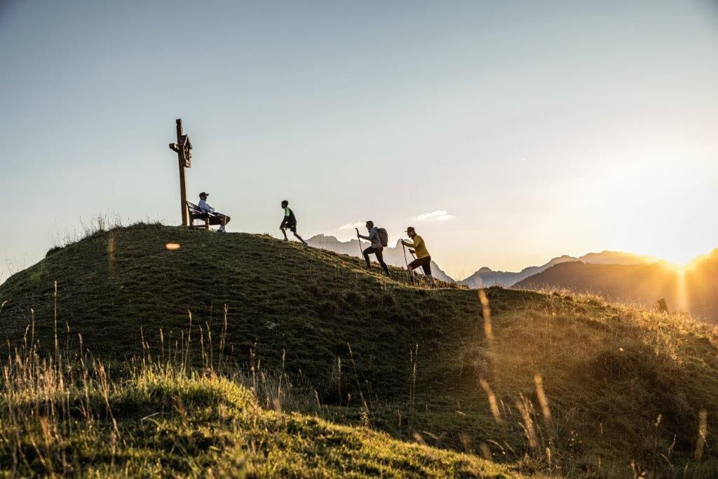 Von der Kirche in Erpfendorf wandern Sie am Berghof vorbei in Richtung Kirchdorf. Auf Ihrem Weg kommen Sie zum Bichlbauer, der in seinem 24-Stunden-Automat seine am Hof erzeugten Produkte anbietet. Vom Jägerbauern bis oberhalb der Jägeralm erfahren Sie auf Ihrer Wanderung anhand von Schautafeln des Bienen-Informations-Weges Wissenswertes über Bienen und Imker. Der Wanderpfad windet sich weiter bergauf, schattig unter Laub- und Nadelbäumen. Wenn sich der Wald lichtet und Sie die offene Almweide erreichen, sind es nur noch wenige Minuten bis zur Huberalm. Die traditionelle Almhütte auf 1.050 m wird von der Besitzerfamilie bewirtschaftet und bietet seinen Gästen viel Regionales und Selbstgemachtes. Um auf die Huberhöhe zu gelangen, halten Sie sich in Richtung Angerlalm. Der Aufstieg auf den grasigen Kamm erfordert nur wenig Anstrengung. Gönnen Sie sich am Bergkreuz einen Moment der Ruhe und den traumhaften Rundumblick auf die Bergwelt. Auf der anderen Seite des Kammes führt der Pfad zurück zur Huberalm. Am Forstweg wandern Sie gemächlich hinunter ins Tal. Im Ort angelangt können Sie Ihre müden Wanderfüße in der Kneippanlage beleben bevor Sie Ihren Ausgangspunkt an der Kirche erreichen.