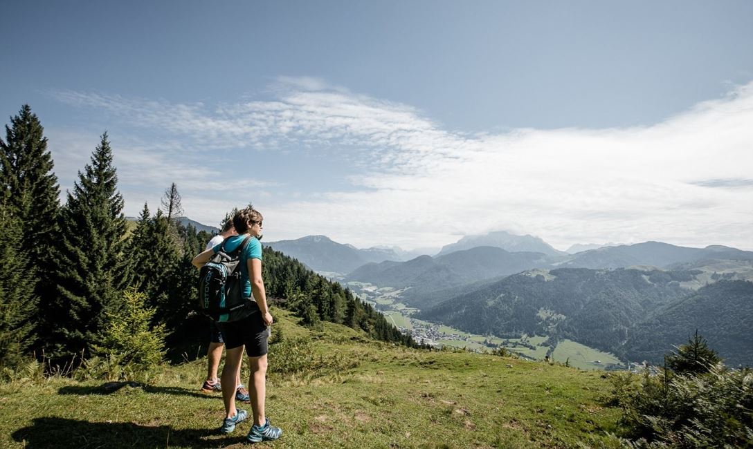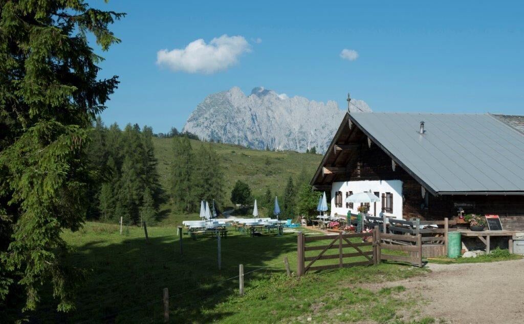 Zurück wandern Sie auf dem Güterweg an Almwiesen und der Marcheralm vorbei, talwärts zum Parkplatz Hinterberg. Gehen Sie links am Bauernhof Faulern vorbei und Sie gelangen auf Waldwegen hinab nach Kirchdorf.