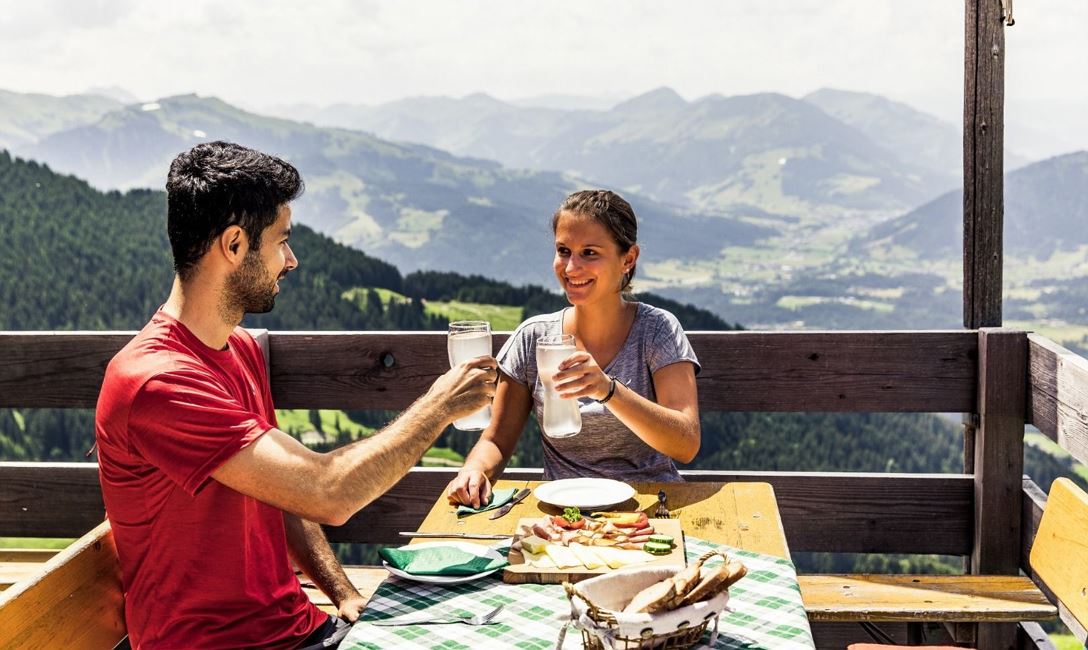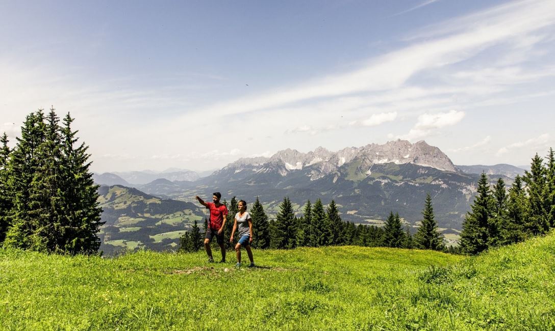 Sie treten den Abstieg an. Falls Sie auf der letzten Wirtschaft noch nicht hungrig waren, haben Sie wenig später auf der Stanglalm abermals die Option, einzukehren und urig zu speisen. Verabsäumen Sie es nicht, hier das letzte Mal den Wilden Kaiser in all seiner Pracht zu betrachten – schon bald sind Sie nämlich am Ende Ihrer fünfteiligen Reise angelangt.