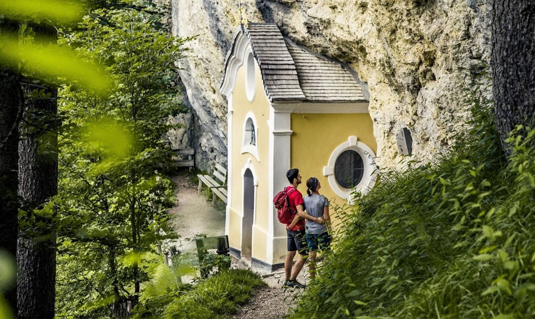 Vom Gasthaus Mitterjäger wandern Sie links in Richtung Siedlung und danach durch den angrenzenden Wald bis zum Bauernhof Schattern. Quer durch das romantische Waldgebiet gelangen Sie zur nächsten Weidefläche. Hier bietet sich ein wunderschöner Blick auf Kirchdorf in Tirol und auf die im Hintergrund liegenden Steinplatte. Der Weg führt Sie nun abwechslungsreich durch den Wald hinauf zur Lourdesgrotte. Die heilige Bernadette und die heilige Jungfrau Maria wurden 2018 vom Kirchdorfer Bildhauer Horst Pali geschnitzt und ersetzten die originalen Statuen aus dem Jahr 1952. Weiter wandern Sie zur bekannten Gmailkapelle - dieser besondere Ort zieht die Besucher magisch an. Über einen Steig wandern Sie nun weiter hinauf bis zum Schatterkopf und hinunter zur Metzgeralm und Bacheralm. Ab hier führt der Weg gemächlich entlang einer schmalen Forststraße zurück zum Ausgangspunkt.