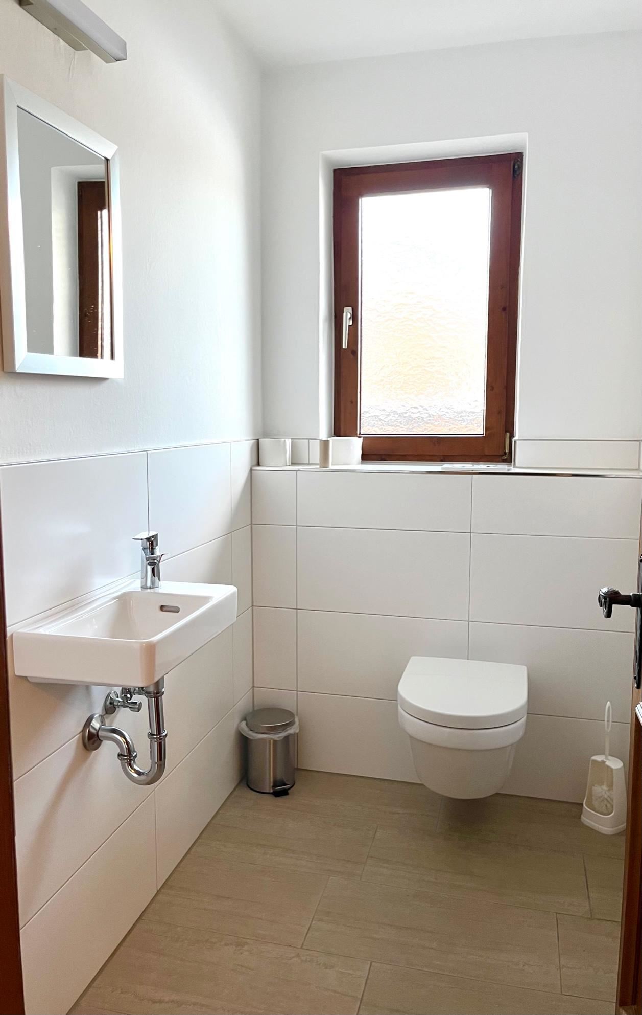 Apartment, shower and bath, toilet, facing the garden