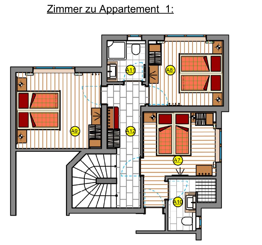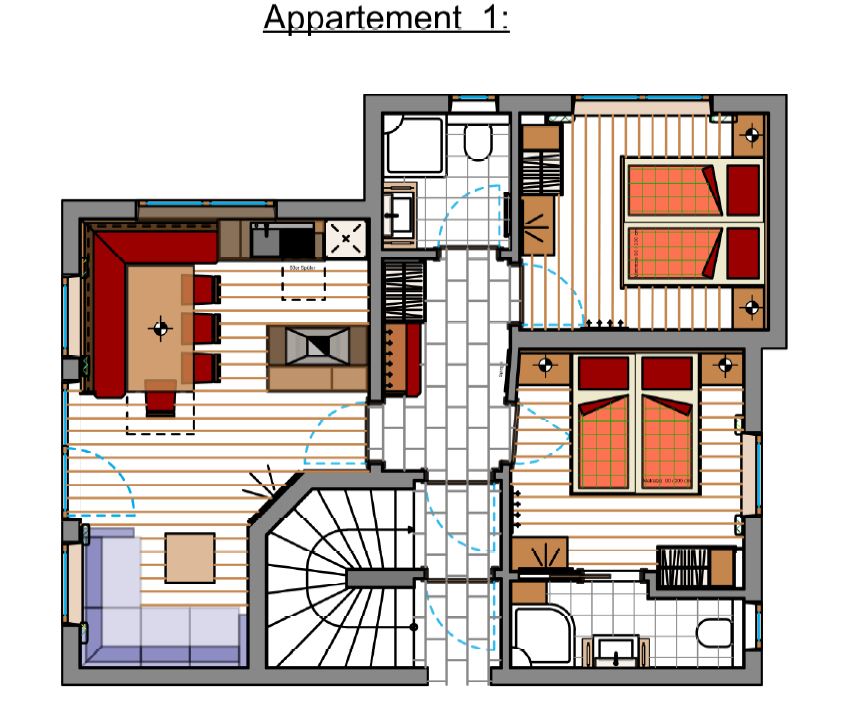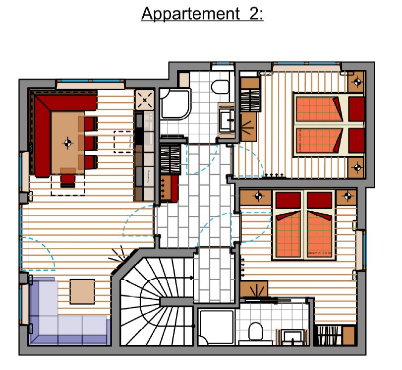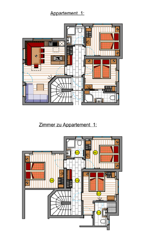 In the newly built house we can offer you 2 holiday apartments (for 4 persons and from 8 - 10 persons).