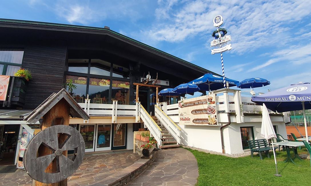 It's not just ‘holidaymakers’ who have a good time at the Mühle, ‘locals’ also feel at home there! The regulars' table is the place to play cards, the bar is the place to chat about “what's new”, the terrace is the place to cheer on a tennis match ... and enjoy fresh drinks and delicious food: from classics such as schnitzel, burgers, steaks and spare ribs to crisp salads, pasta dishes and sweet desserts. Snacks are available throughout the day.