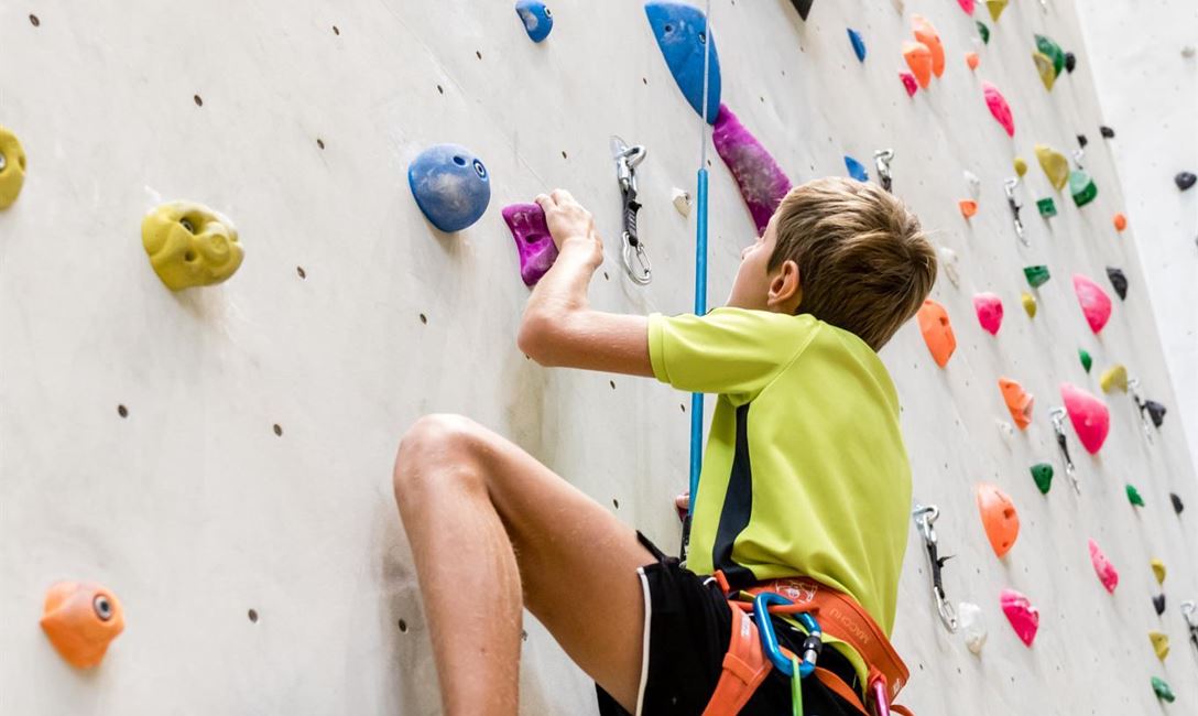 16 meters high, around 100 routes, two auto belays allow climbing without a belay partner. Opening hours: 10:00 AM – 10:00 PM.