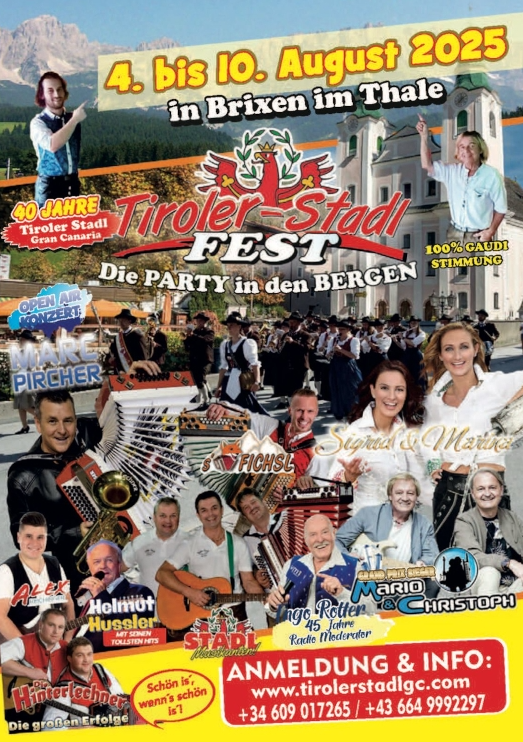 starting at 7 PM, the Brixen im Thale music band will play for you, and from 8 PM, Marc Pircher will ensure a great atmosphere.